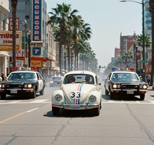 From being chased by a semi through the California desert to racing through it in search of buried treasure. The cars? Yes, there's lots of 'em, including a Dodge Dart 440, a Chevy Impala, a convertible VW Beetle and even a Dodge M37 tow truck.