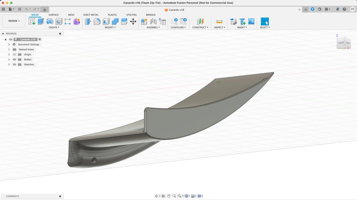 So then I messed around in Fusion 360, using a plugin to generate the canard and trim it to the car: