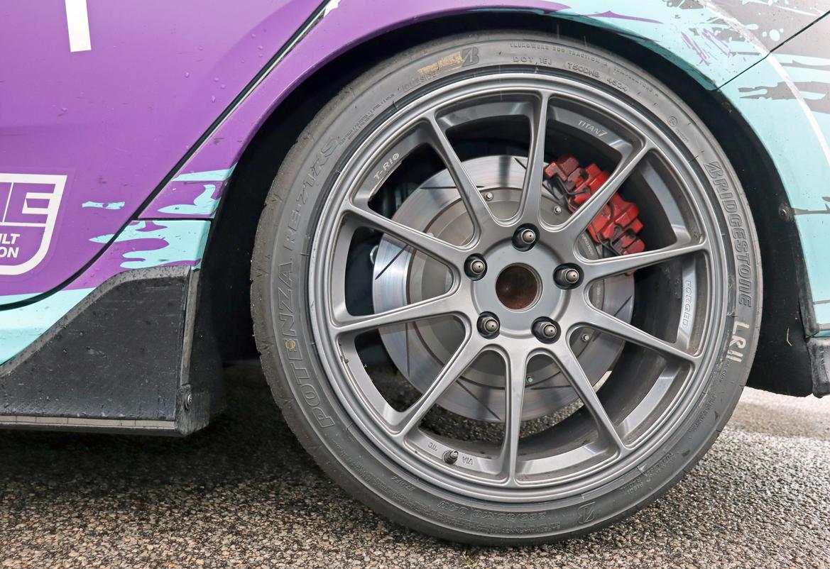 Next up, ditch the stock wheels and tires, Eddy advises. “The stock FK8 Type Rs came with a 20-inch wheel,” he notes. “If you’re taking a corner fast, it’ll wear the outer edge of the tire because it rolls over so much–there’s so little sidewall.