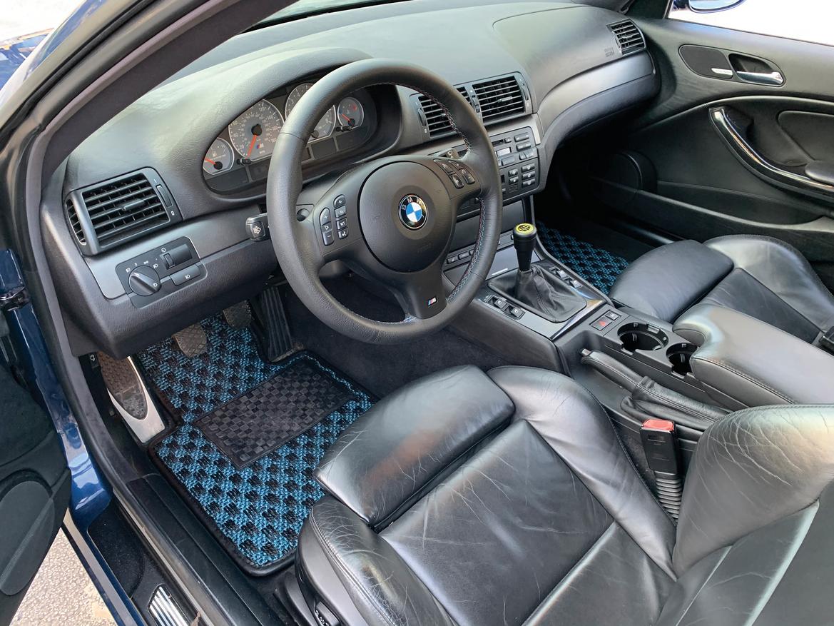 The M3’s interior blends function with form: well-bolstered seats, meaty steering wheel and, on our car, some cool checker mats from CocoMats.com.