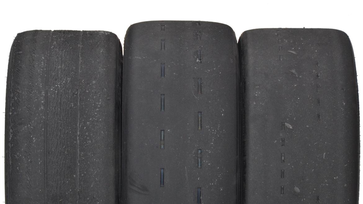 From left to right: Goodyear Eagle RS DOT, Yokohama Advan A055, Hoosier R7. Photography Credit: Andy Hollis