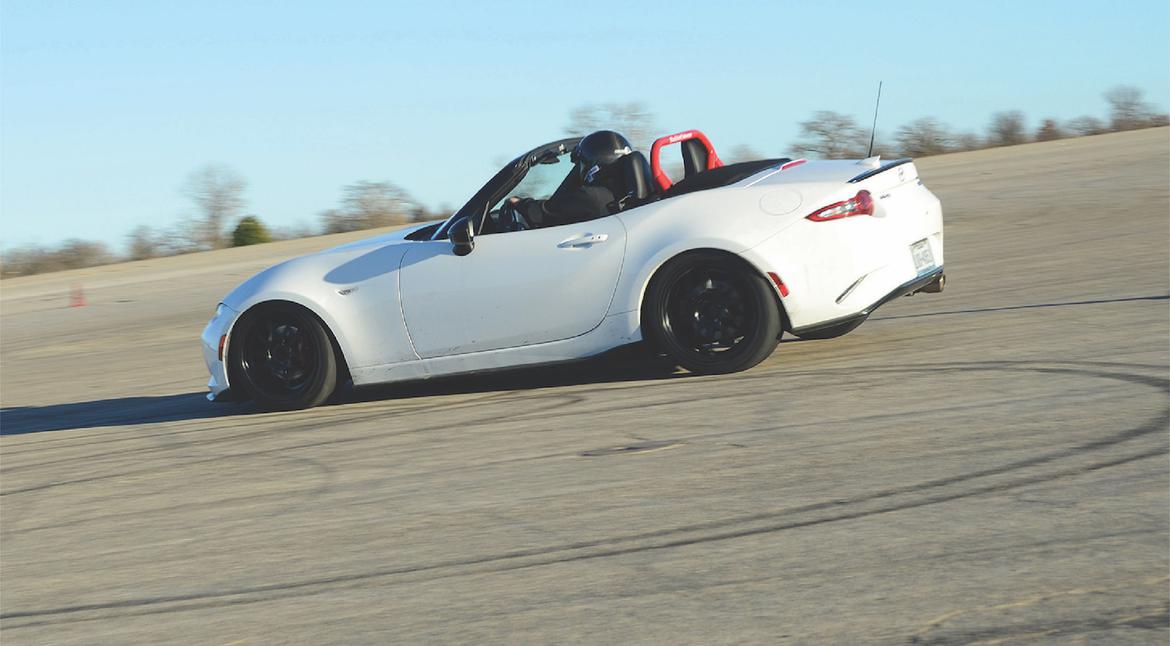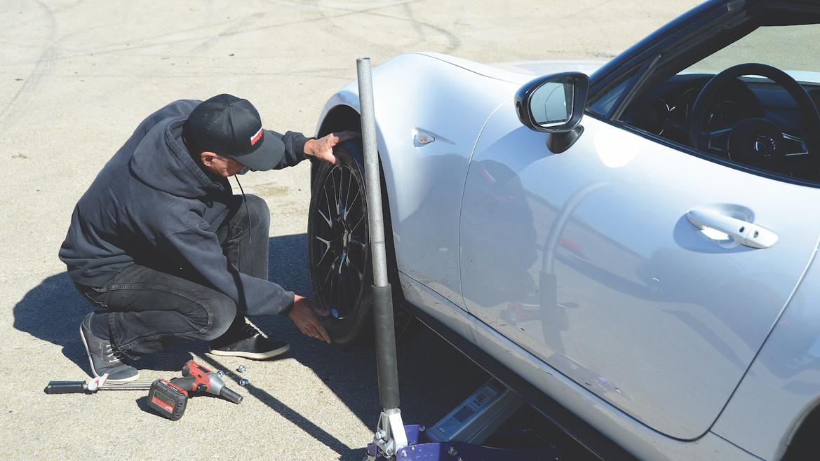 The test mule was a 2019 Mazda Miata–an SCCA Time Trials Nats winner–and for this test we used OE-sized, 17×7-inch wheels. This pinched setup better replicates that found in C Street and Solo Spec Coupe competition. We then chose the Bridgestone Potenza RE-71R as a benchmark since it works well when pinched and served as the target for the new Falken.