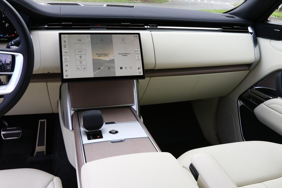 Behind the wheel? First you gotta climb up. The Range Rover might not look that big, but at 207 inches long and 73 inches tall, it’s about the size of a new Tahoe.