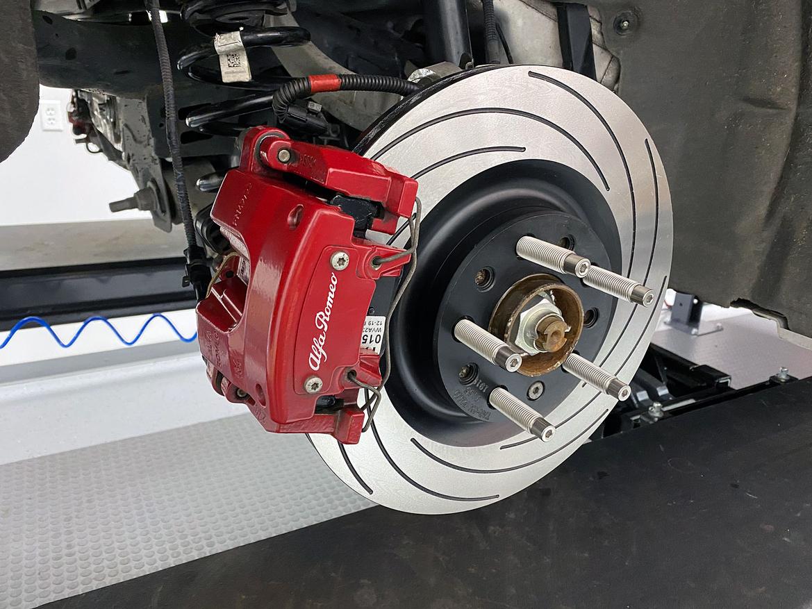 The Giulia and Stelvio share the same brake rotors and calipers, improving parts availability–to an extent. As far as track-oriented pads, Joe says they are easy to find for the front. The rear, not so much. Eurocompulsion sells track-oriented rear pads from EBC.