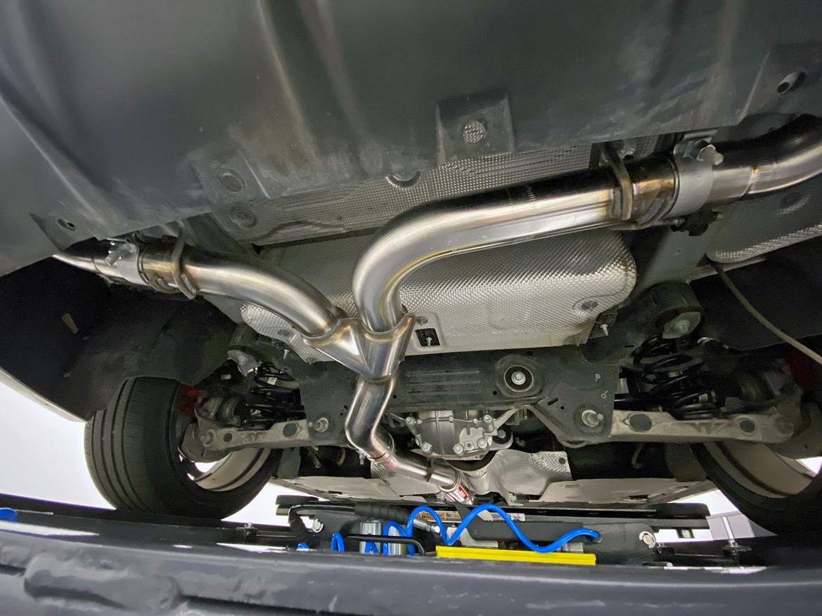 Joe says many Alfisti complain that the Giulia is too quiet, so it benefits from an aftermarket exhaust–but not just from a sound aspect. “We’ve got a 3-inch cat-back from Magnaflow,” Joe says. “We updated our original exhaust design to use a Helmholtz resonator in the center section in 2021–this gives the same full-throttle sound but also eliminates drone in the 1800-rpm range, with no effect on performance. You’ll definitely feel the throttle response difference right away with any basic exhaust. Most European manufacturers go with a 2-3/4-inch style of exhaust, but we’ve seen better results from a full 3 inches.”