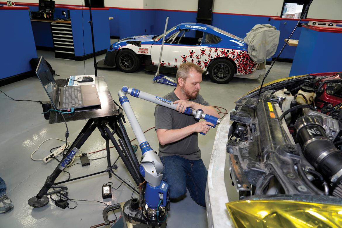 Different 3D scanners for different tasks. The FaroArm, popular in motorsports and other industries, can very accurately measure various points in space. But one isn’t in our budget. Photography Credit: Chris Tropea