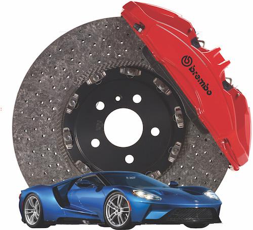 Brake photograph courtesy Brembo, GT photograph courtesy Ford