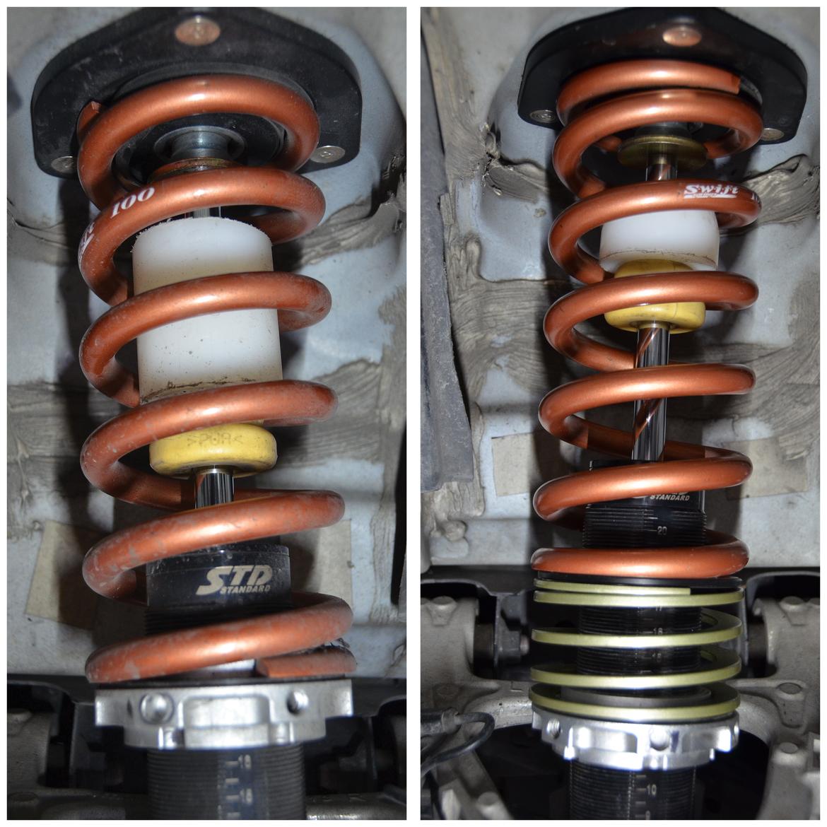 So, how could we gain back suspension travel? To maintain ride height when a stiffer spring is installed, the coil-over must be adjusted to compensate for the reduced static deflection.