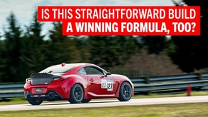 A fully carbon-fiber body sits atop a Vermont SportsCar-engineered chassis and roll cage. The Brataroo also uses active aero. The front fender louvers can fine-tune the car’s attitude in the air. Two interchangeable rear wings are available, with a larger one for high-speed driving and the smaller one for slower speeds. These, too, aid in airborne antics. Repurposed HVAC controls inside the cockpit allow the driver to adjust the aero on the fly.