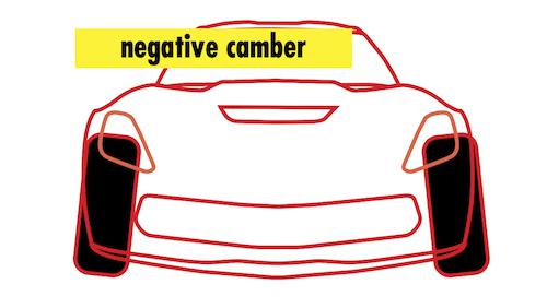 Goal: On most production-based cars, maximum negative camber is the correct answer–and you may have to slot, tweak or replace something to get a little more negative camber than stock. If the outside edges of the tires are getting too hot and thus wearing too much, your alignment likely doesn’t have enough negative camber.