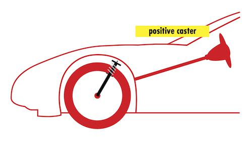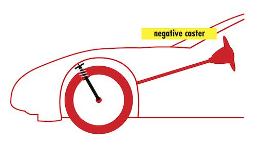 Caster: The tilt of the steering pivot access from vertical when viewed from the side.