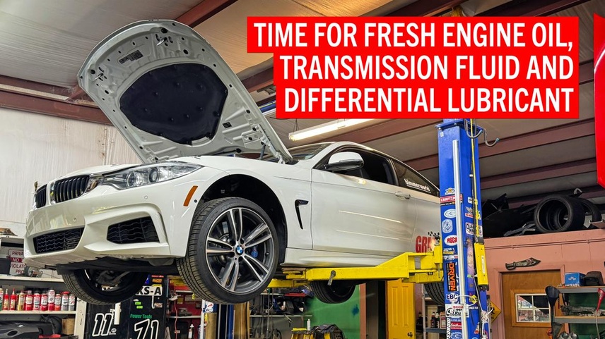 Before we drove our new-to-us BMW 435i any further, we put it up on the lift and replaced its engine oil, transmission fluid and differential lubricant.