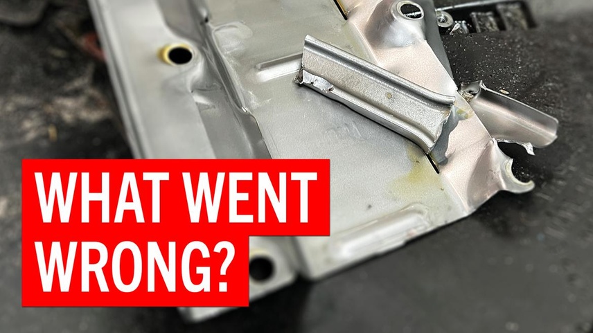 We install a new oil pan baffle to combat oil starvation.