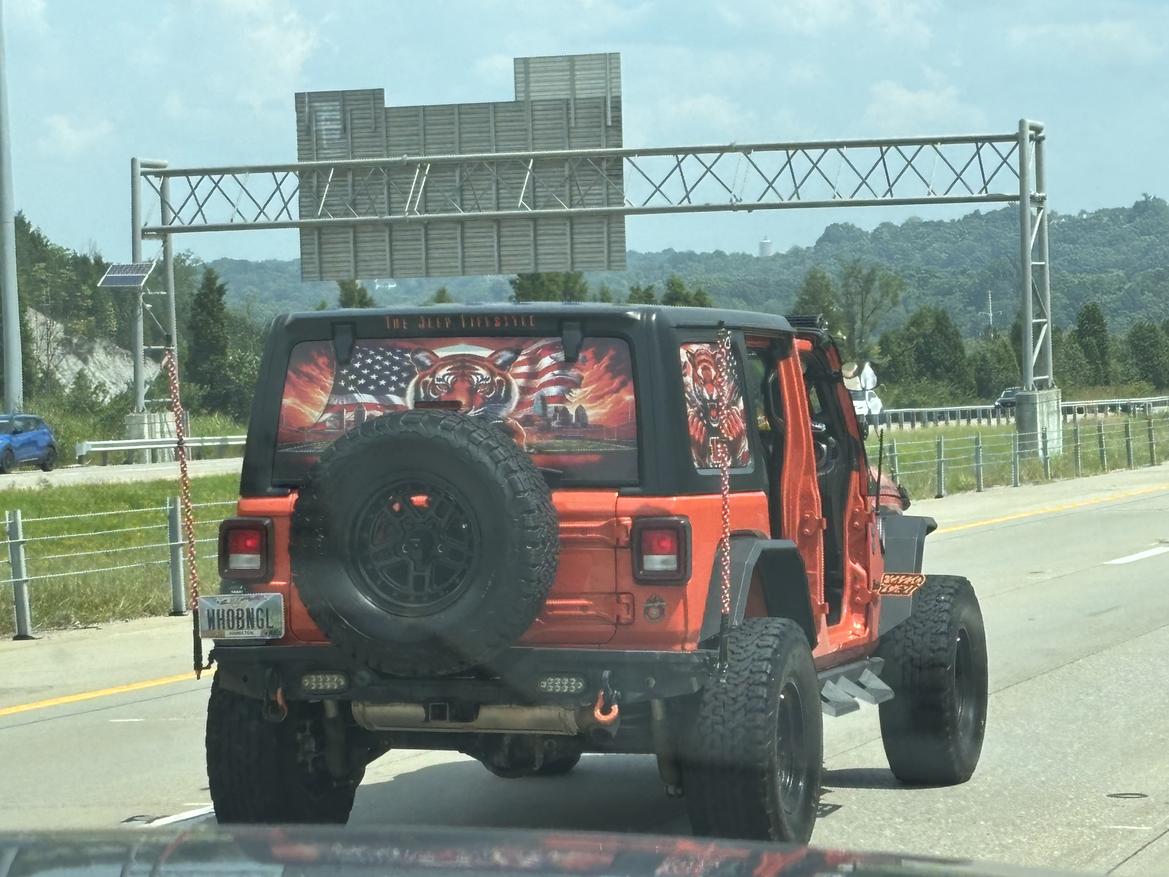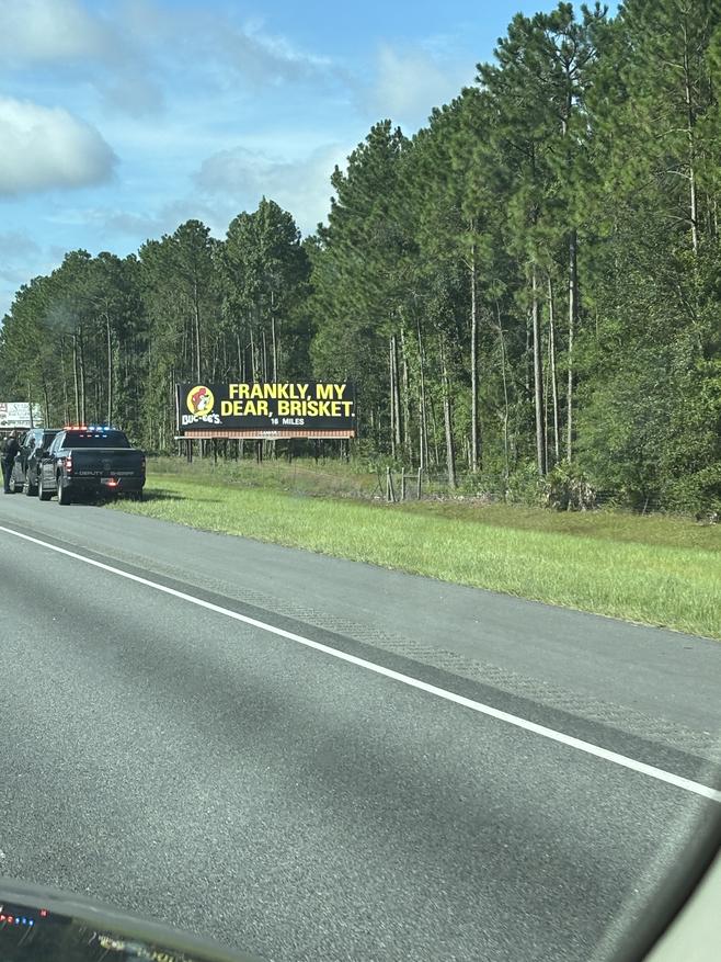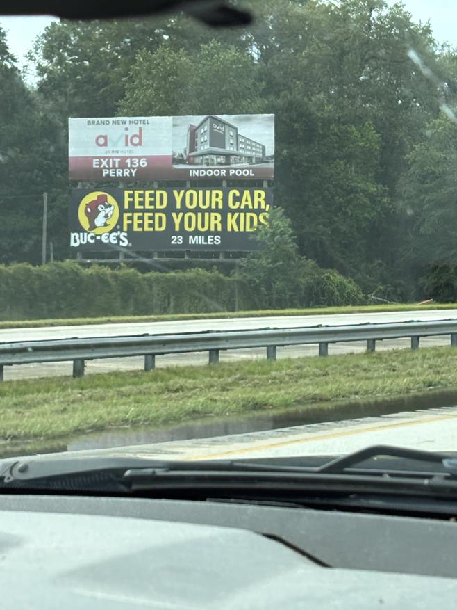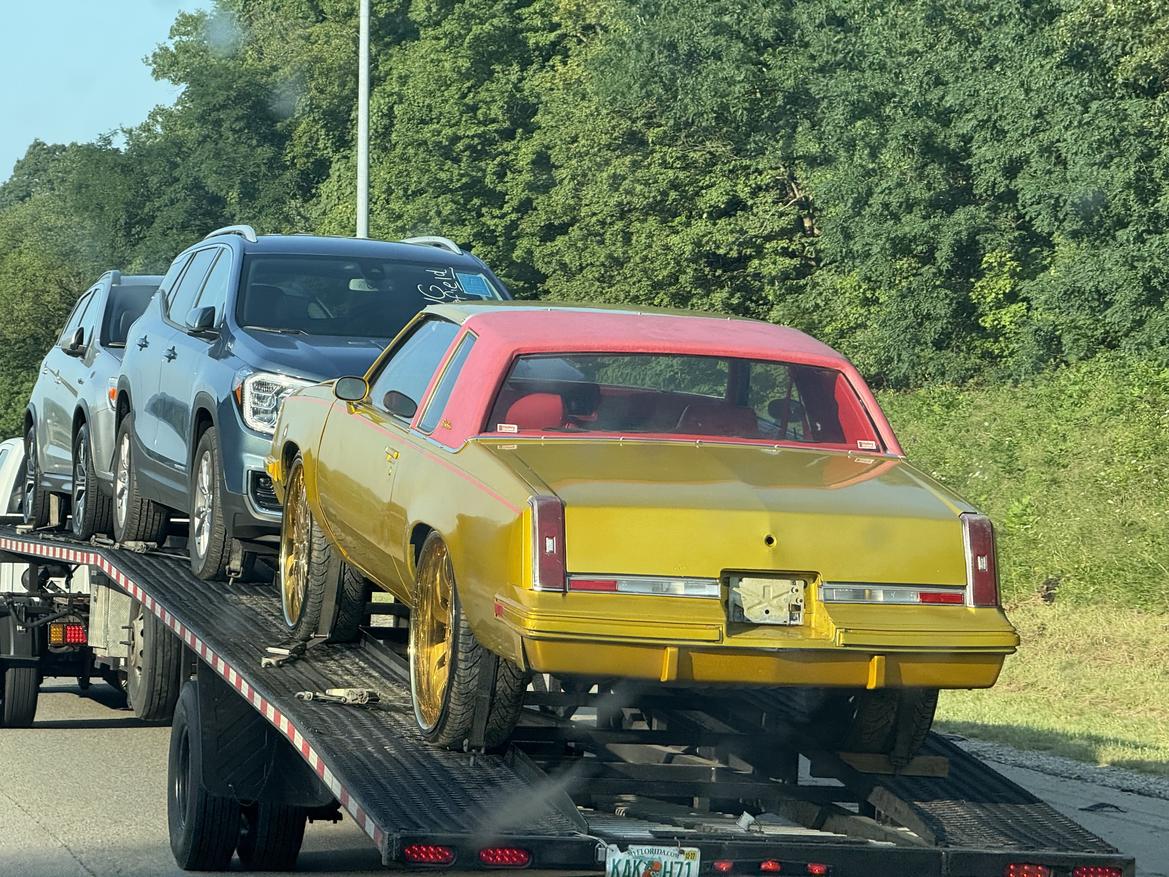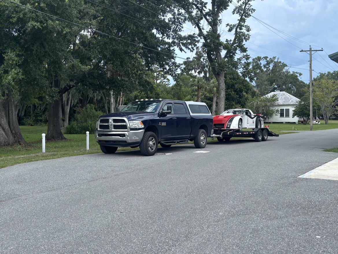 We had to leave, and pressed on until we were too tired to go continue. Got up on Wednesday, got going, and made it to a_florida_man's place a little after noon. He was unable to be there, but Stampie had stopped over to pick up some parts, and help us load up. This is where Patrick's trailer also shined. Even with tall drag tires in back and spring spacers up front, the car was low. Between the dovetail and wider deck, Patrick's trailer handled it well. Going to be interesting figuring out how to haul it down on wae's trailer. May need to build some much longer ramps. We loaded up in the Florida heat and humidity, which other than the overbearing sun, wasn't much worse than Ohio has been this year. Stopped and grabbed some lunch together before we parted ways, and Patrick and I headed north. We made a quick detour to Summit Racing to check out the discount section, and let Atlanta rush hour settle down, then made it to somewhere in southern Tennessee for the night.