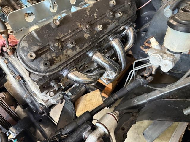 There is one other potential problem, and I need to investigate it a bit before making new bushings. The engine is sitting about 1/4"-3/8" higher than I calculated it should be. I completely forgot to take into account the rubber mounts would have collapsed somewhat under the weight of the engine, even when new, not that I would have been able to come up with an exact number for that anyway. The bellhousing is close enough to the transmission tunnel, that it would be good to bring the engine height down as much as safely possible, especially if the back of the transmission ends up needing to be raised to attach to the C-beam properly. However, while it is sitting where it is, it makes sense to recheck the power steering pumps for fit, and look into water pump clearance and anything else I can think of first.