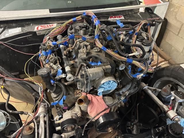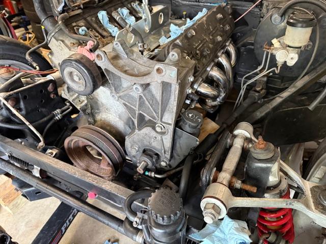 Time to reinstall the engine. took a little extra work, since the new mounts were far stiffer than the original rubber mounts. Ran into my next problem.