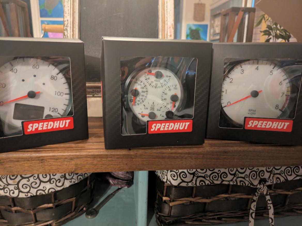 I have the black face version of those. And I like the simple face to them. Blends in well with the interior of my car. I really like their accuracy and responsiveness and warning lights. The built-in shift light on the attack is awesome as well though I do wish I sprung for the sequential light version in hindsight