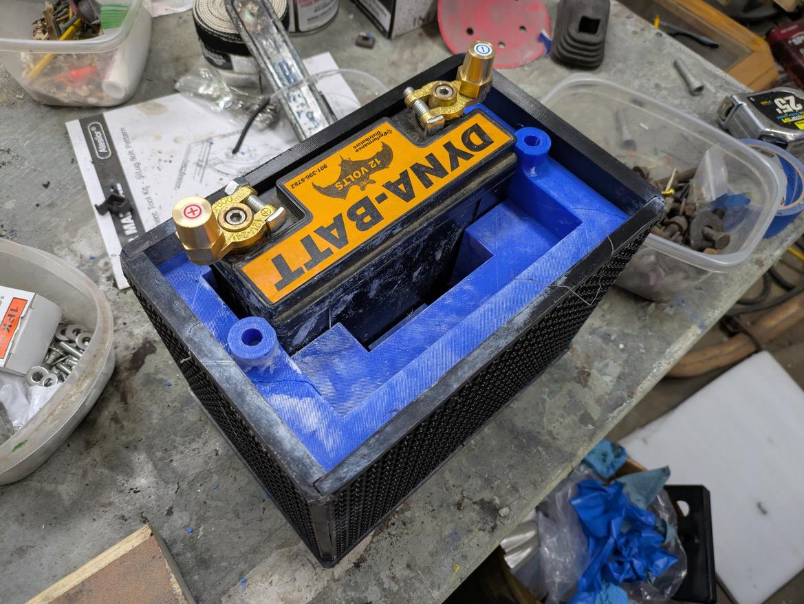 I made a mistake on the battery top from Tim, and need to decide how to handle the positive terminal accidentally being put on the far side (so the cable doesn't reach).