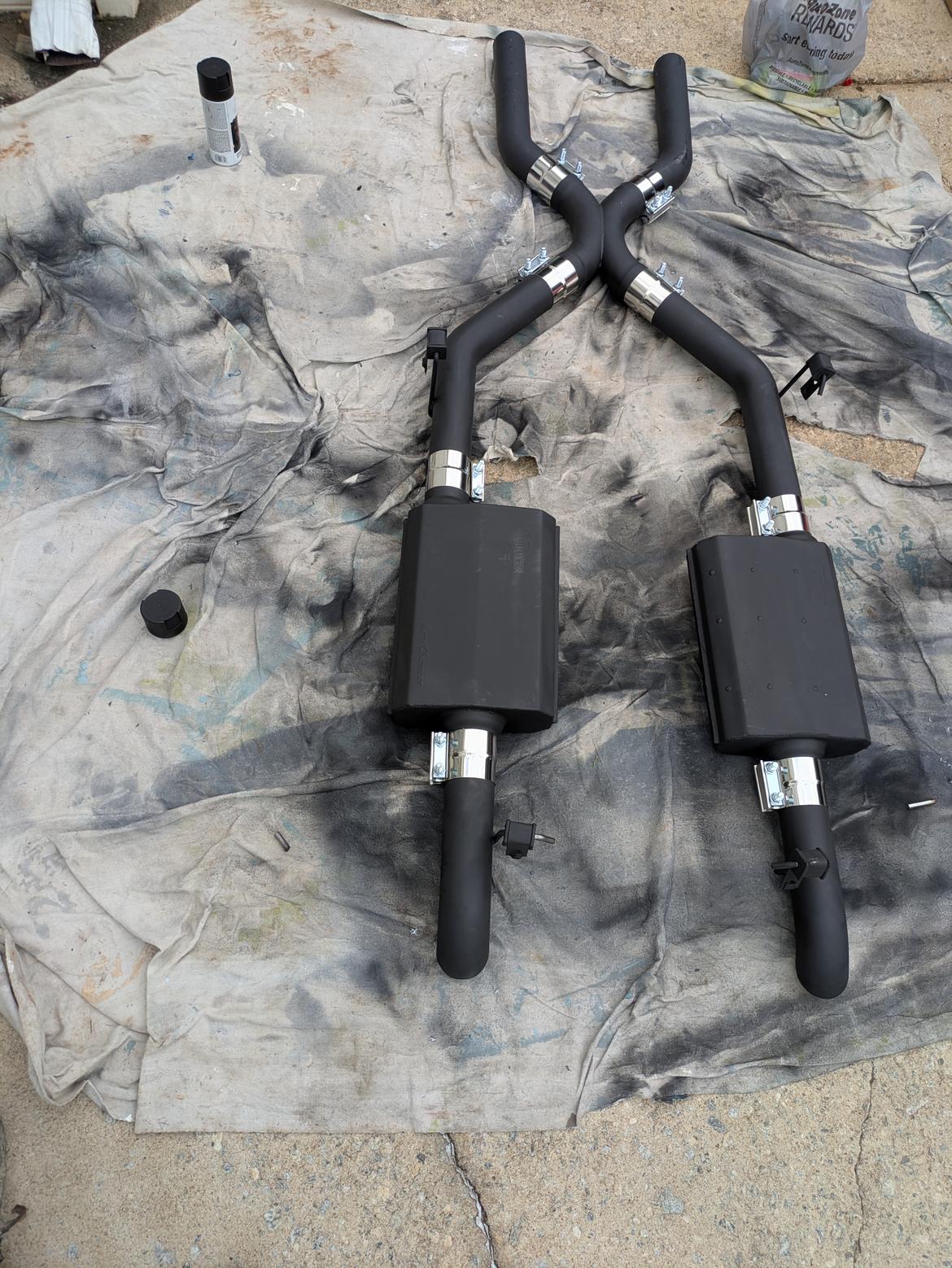 I got some time yesterday, between building a desk with tunakid 4, and driving about doing errands. I got the exhaust all hung. It fought hard, but it should be good now. It's better than good, it's done.