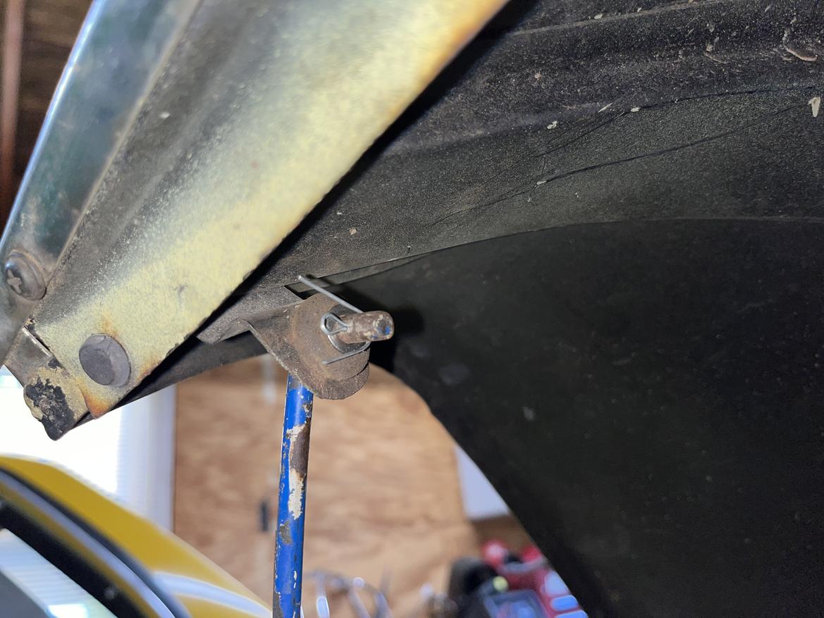 Before getting the car seat stuffed in the back, however, I fixed the hood prop. The old rubber bushing thingy had disintegrated a bit.