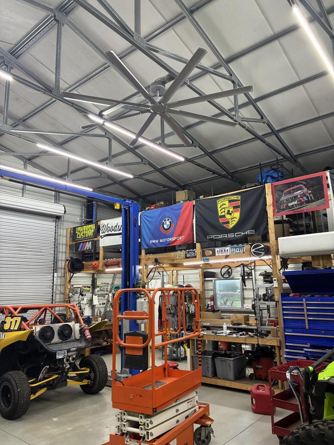 The shop recently turned 6 years old. The Barrina LED lights pretty much all began failing right at the same time. They’d each lose one of their two rows of LEDs. I just got them all replaced a few weeks ago and then the 84” Amazon fan failed. I upgraded to this 96” unit for just over $200 and it pushes a LOT more air than my old one!