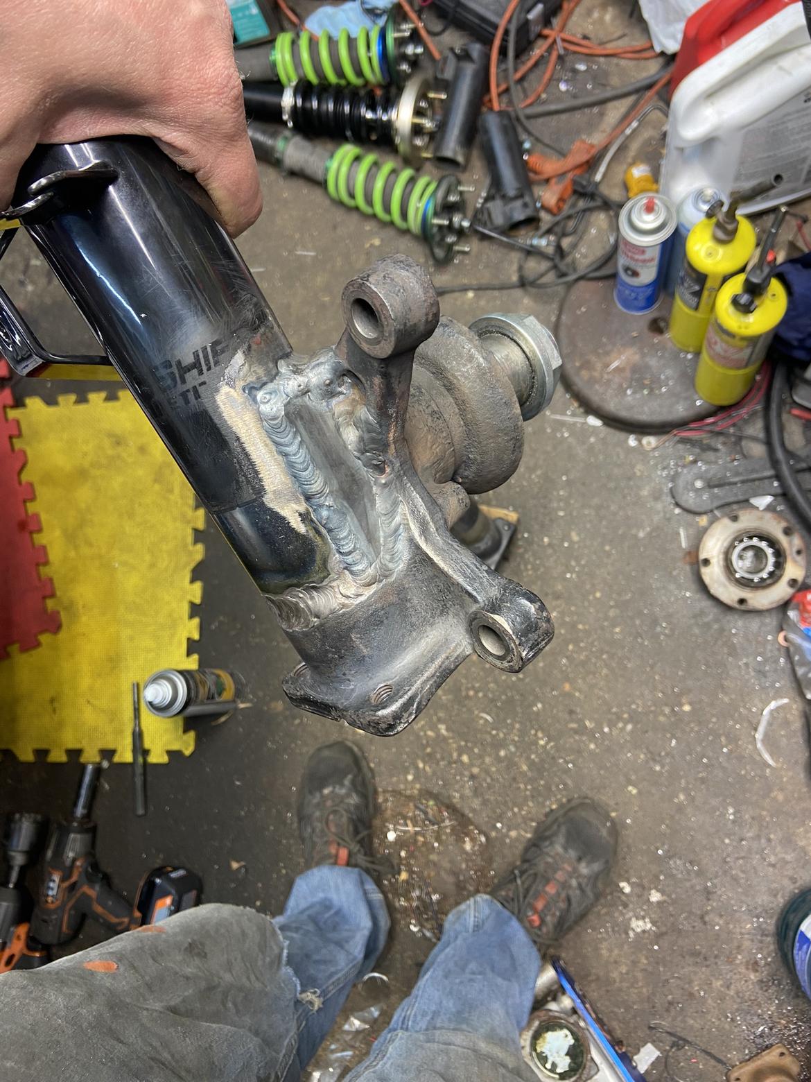 yeah, I added a DOM tubing collar around the whole thing, welded to the spindle, and two gussets to the spindle as well. This is much stronger than the original setup (which was fine for a half-dozen stage rallies and about 50 rallycrosses on our rough courses). So should be good to go. I like your reinforcements though.