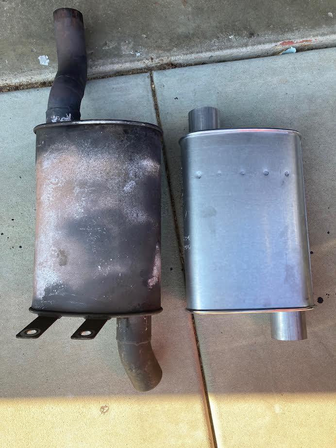 Well, a long time ago I bought a new muffler to replace the blown up example that has been on the car. I had some time this week, so here is what went down: