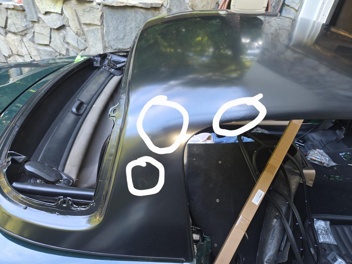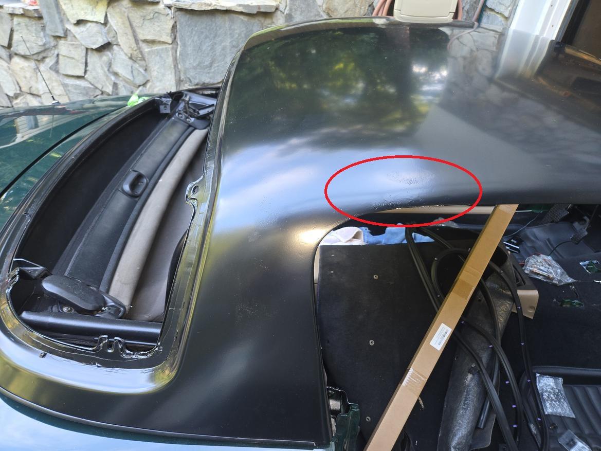 it doesn't photograph well, but the repairs on the passengers b pillar on the hardtop telegraph through the paint horribly. Its going to have to be redone.