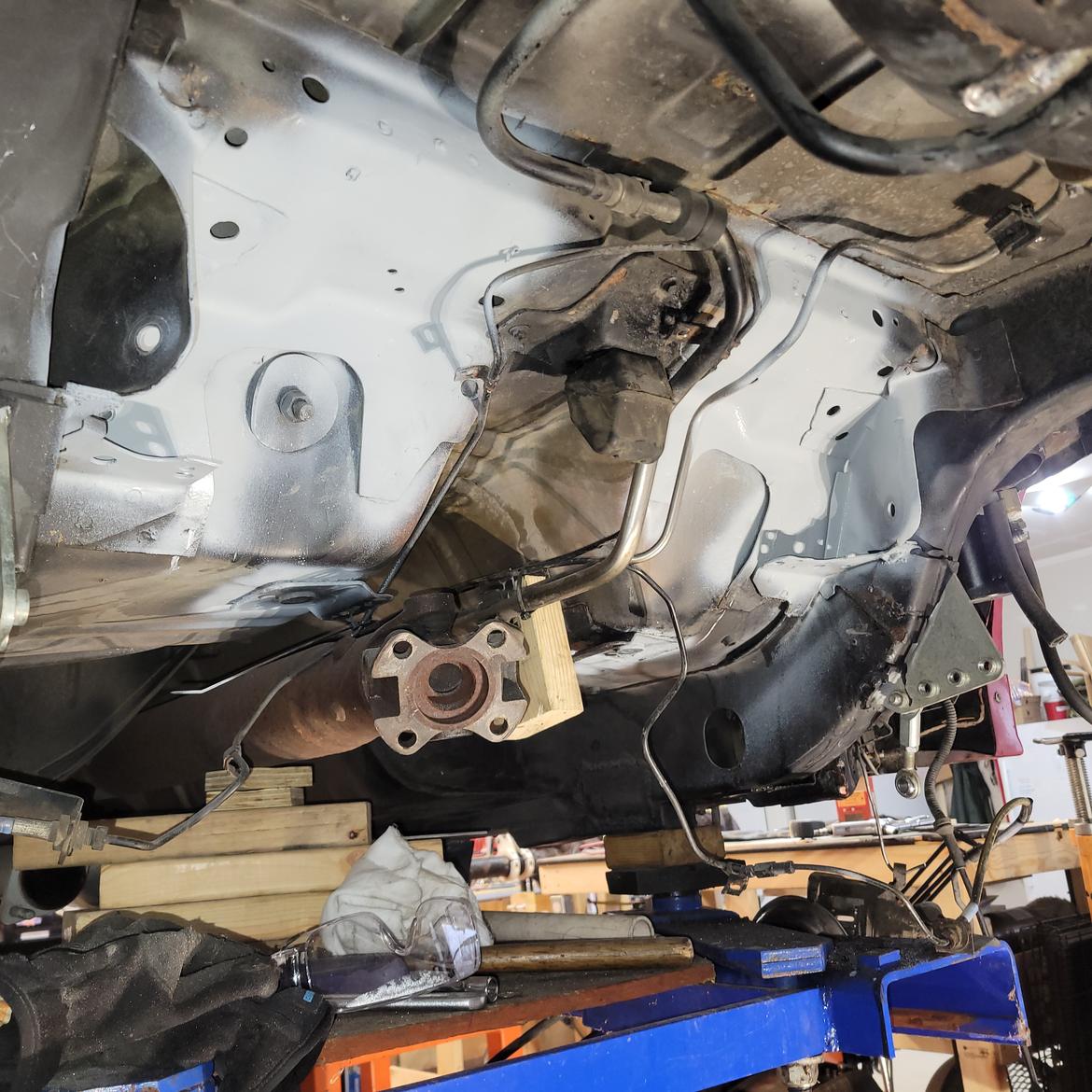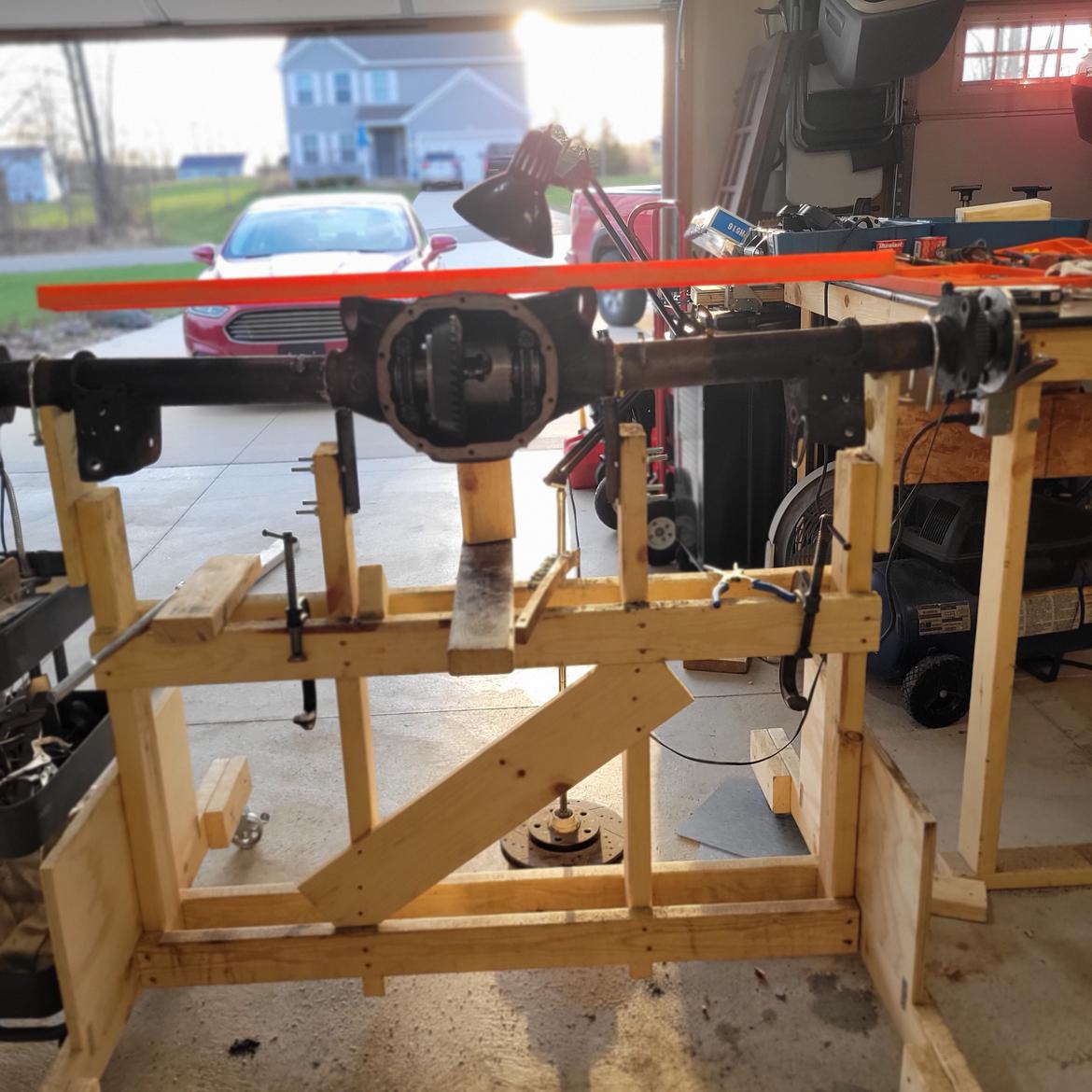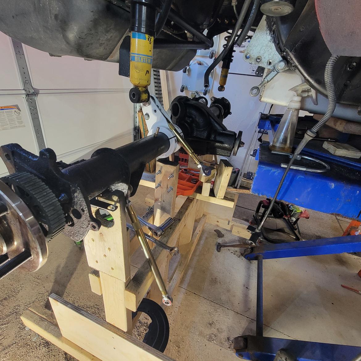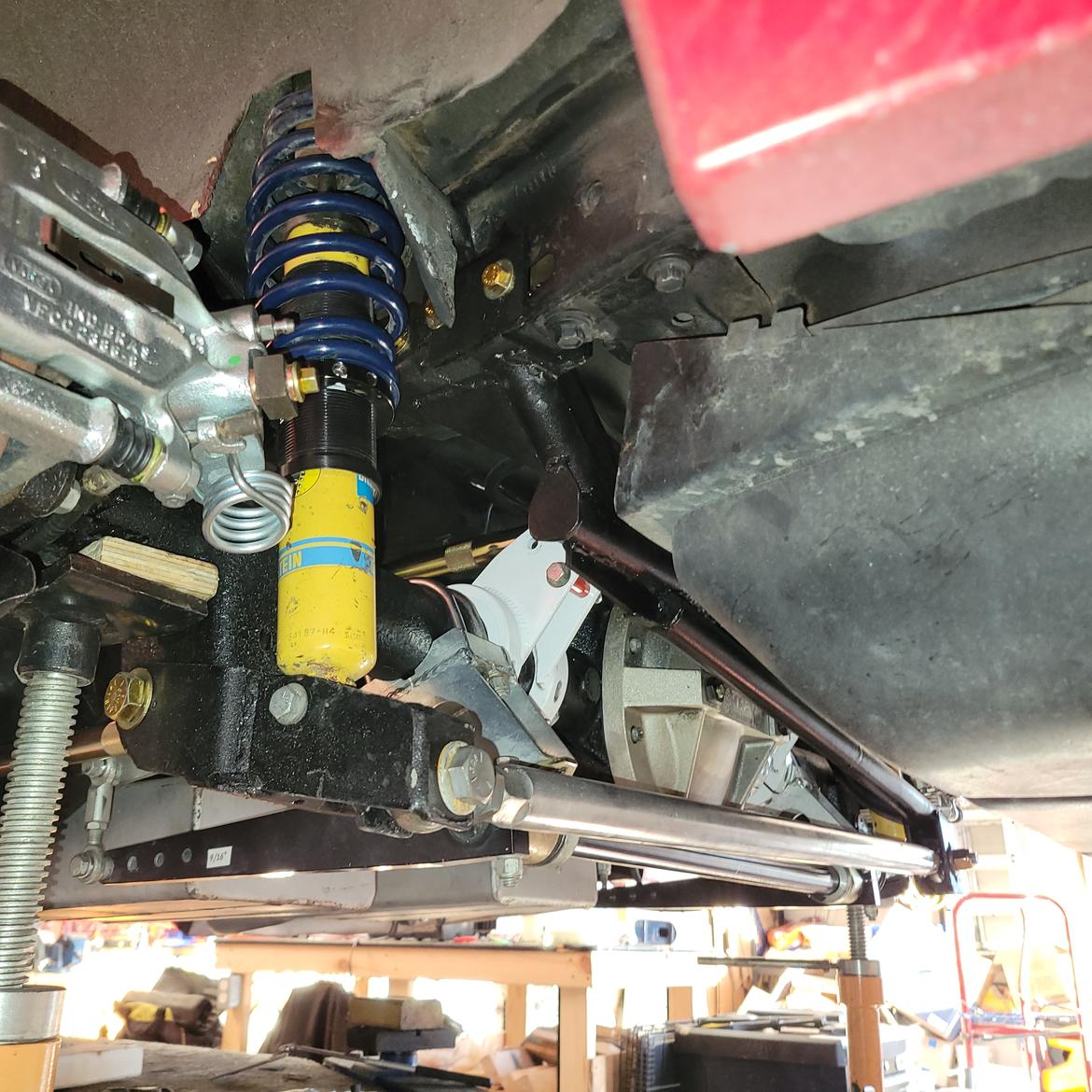 Second, get the car safely in the air and level on its suspension as if it were sitting on perfectly level ground. This is fussy and iterative and took about two days work even with a lift.