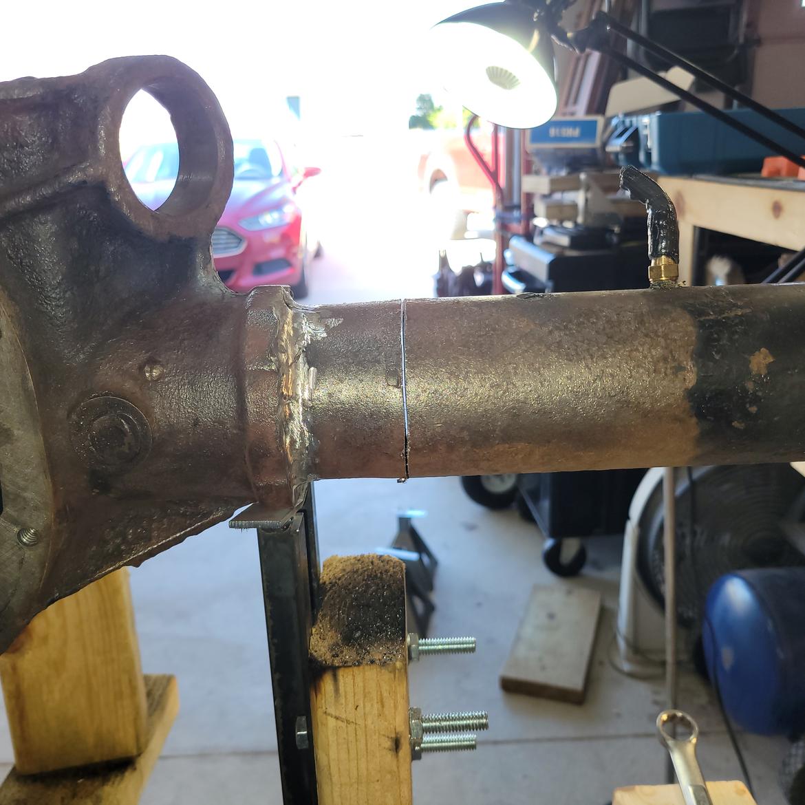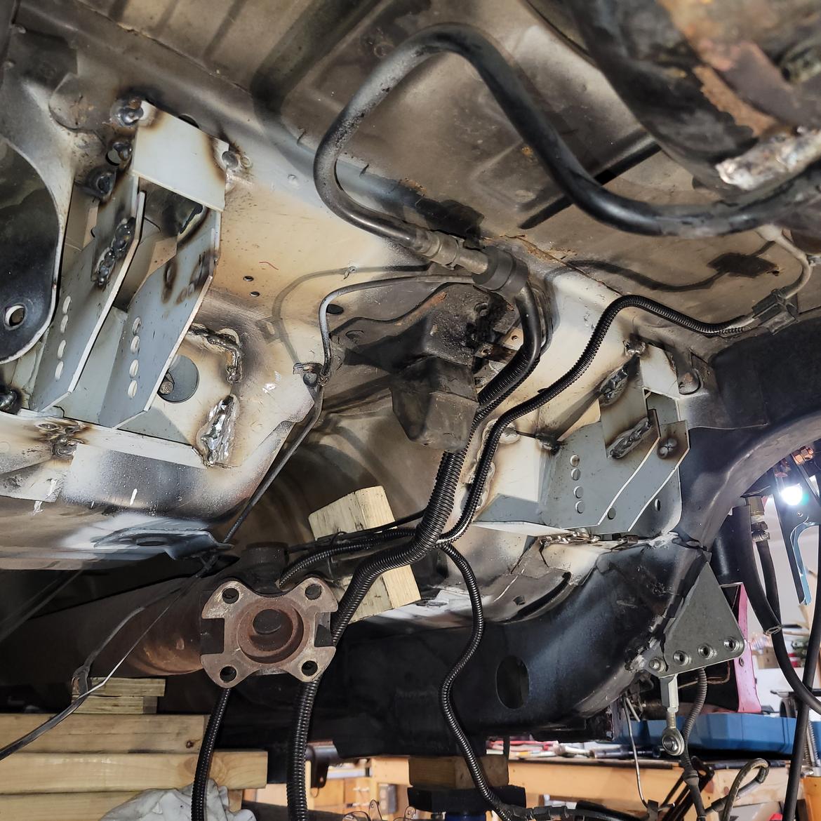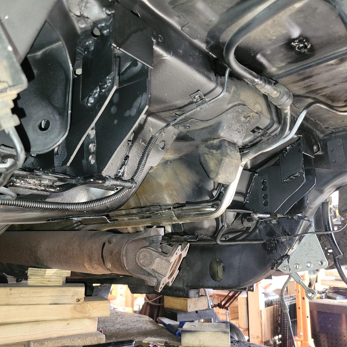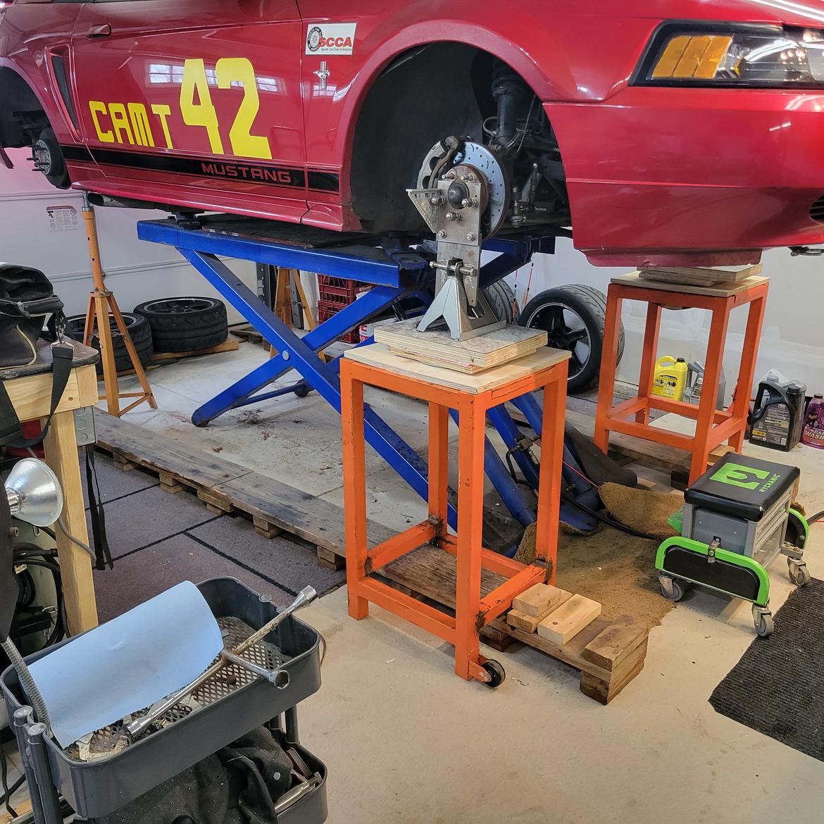 Second, get the car safely in the air and level on its suspension as if it were sitting on perfectly level ground. This is fussy and iterative and took about two days work even with a lift.