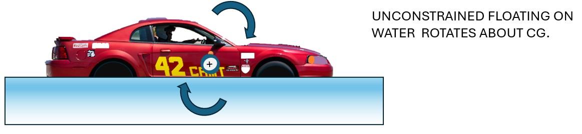 The car boat rocks in the water fore and aft about its center of gravity (16’ above the water and 42 inches behind the front springs in this case).