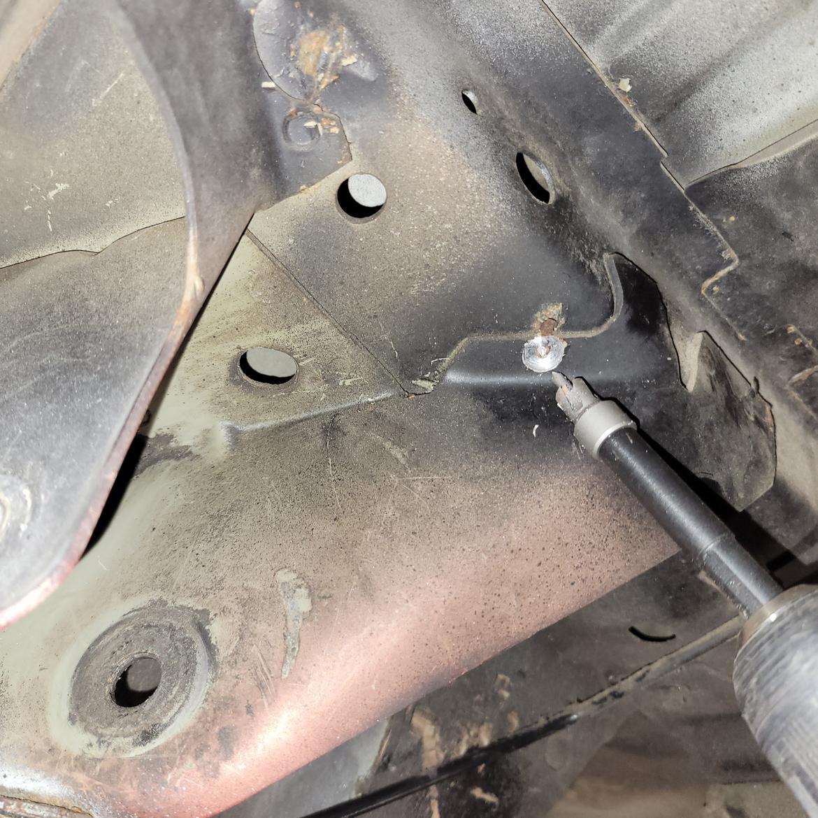 At the rear I used a length of wood quarter round poked through the suspension. Marked it at the rotors. Took it out, measured and marked the midpoint, put it back and hung a plumb bob. Photo below shows the string tied to a magnet as an example.