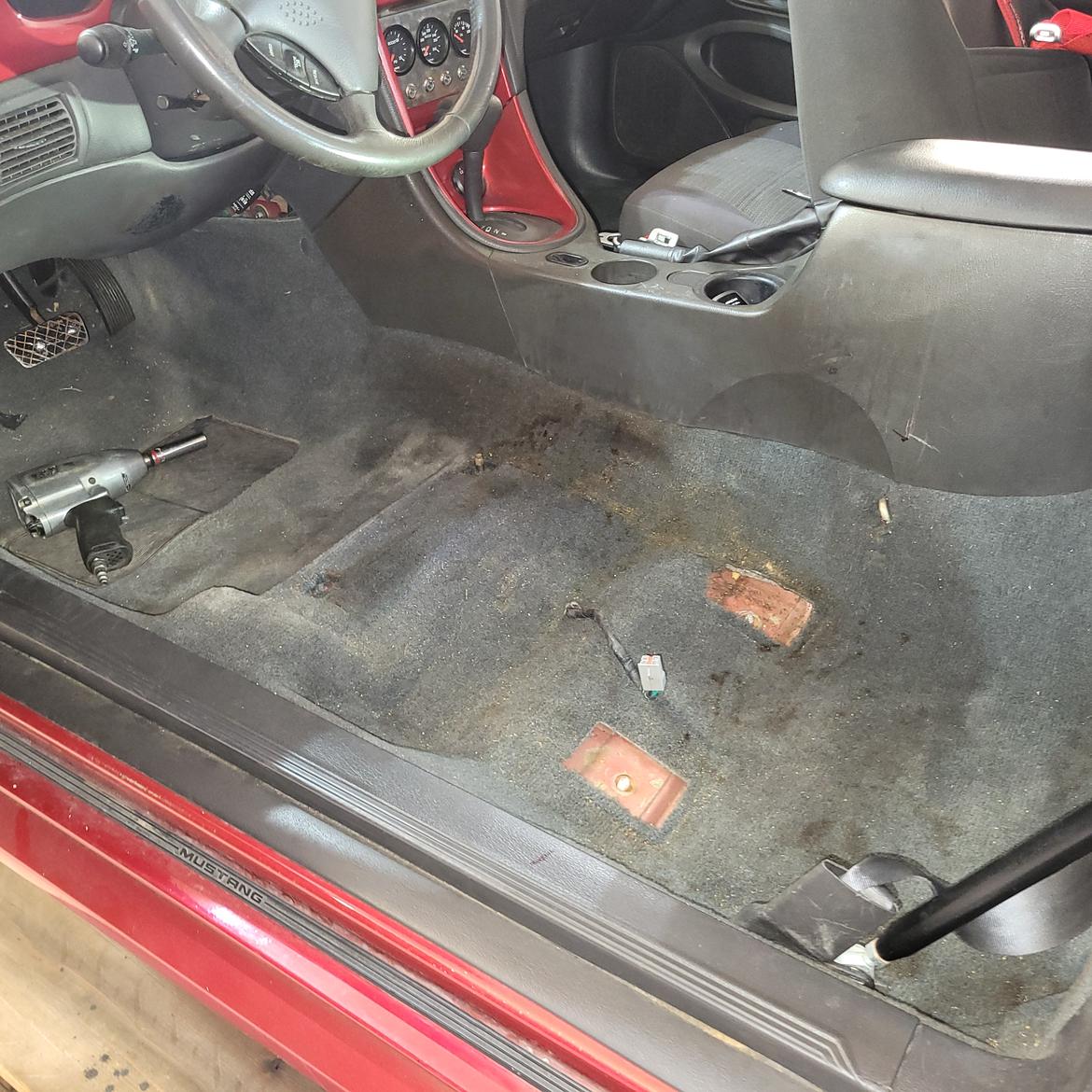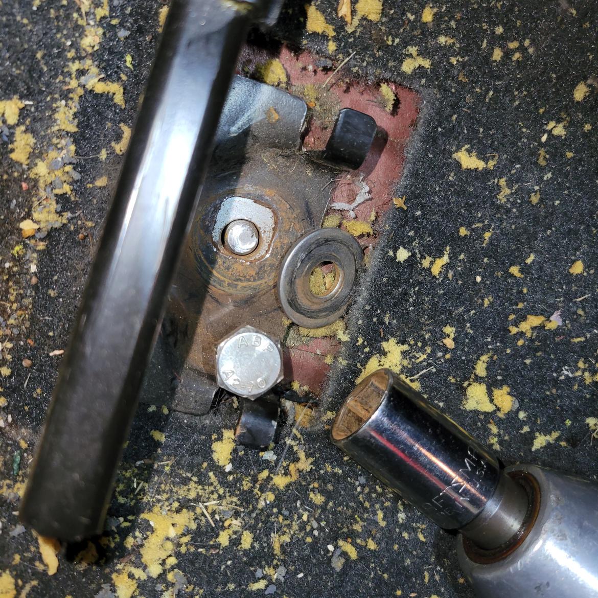 I replaced these bolts from below to hold the frame rail to the car thus creating studs through the floor to hold the new seat down. Much better.