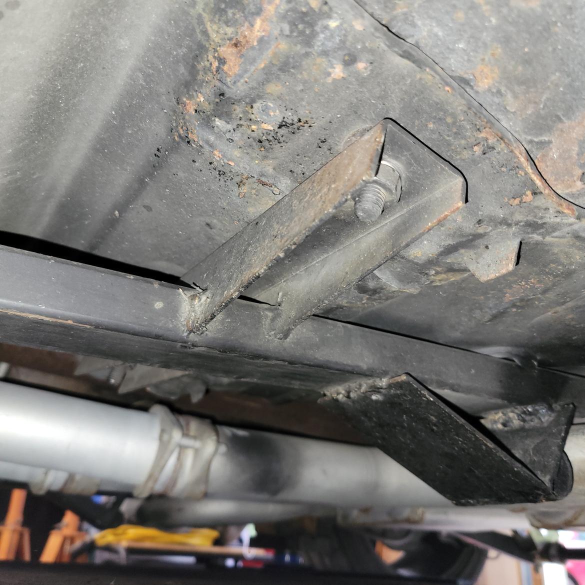 The frame rail nuts below were acting like lock nuts. Luckily I was able to remove them from below by tack welding the nut to what was now a headless stud and hitting them with the impact.
