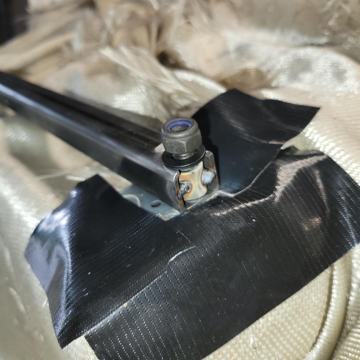 You can’t make a tight bolted connection through a hollow tube (square or round). The bolt will just collapse the tube. So, I placed spacers inside the tube and tacked them in place so that the aluminum Kirkey bracket could be bolted through them.