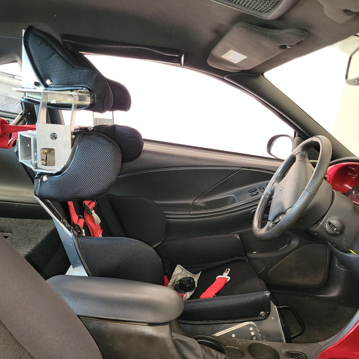 But the mission was to make it safer for the old guy driving it. Win! It would be very difficult to get a concussion while cornering in this seat. Even in an actual crash. Head is supported on three sides. Visibility unaffected.