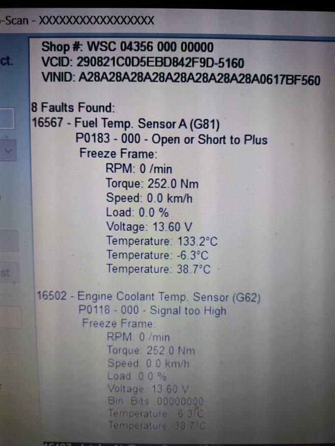 Still awaiting alternator, let's check fault codes