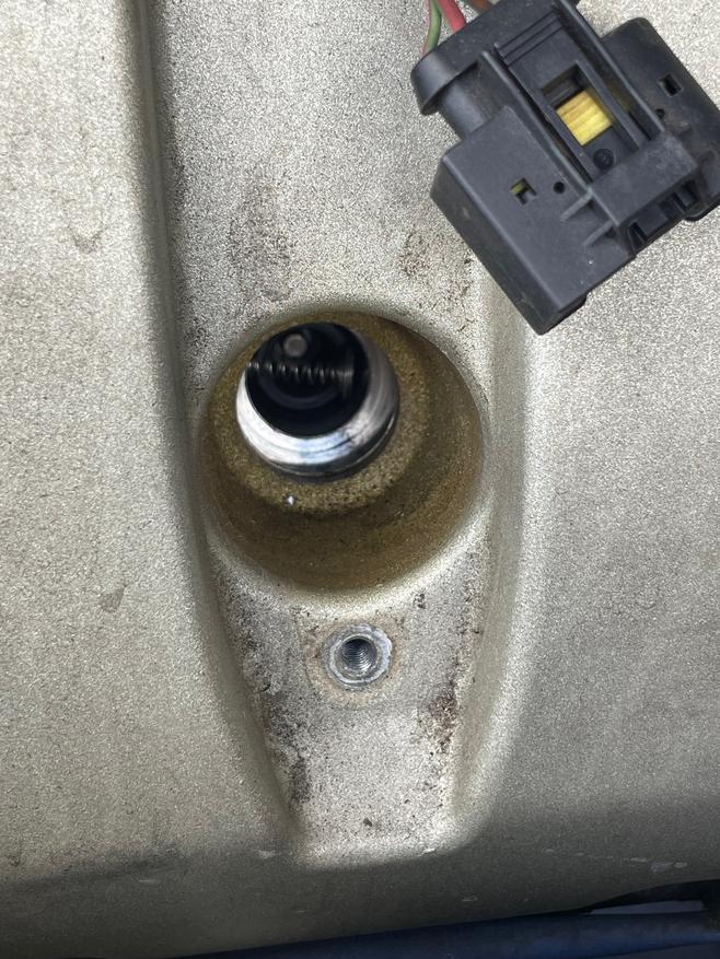 That's my clutch cover. The second bolt I touched, the head sheared right off. At this time, I re-tightened the other bolt, got out from beneath the car, and went inside to cool off. I actually pulled up the stock plastic replacement bushing and was going to just order that and go back to stock, but after some deep breaths I decided to try it one last time. I pulled the linkage rod over to the driver's side, which has a tiny bit more room, and screwed the new socket cup in alllllll the way using my two finger tips, one on each hand. Then, I moved the linkage around, got the socket on the ball, and began loosening that threaded rod, which thus tightened the socket. Again, using my pointer fingertips, turning about 1/16 of a rotation at a time, then twisting the tightening nut the other way to keep it out of the way. Tiny bit at a time. But, I finally managed to get it. It's on! I still need to torque down that nut, but then I went back inside to reinstall the terrible factory shifter (I have a nice short throw shifter coming in the mail but the guy is waiting on bushings from Germany. I have emailed him, asking for an updated timeline). Well, as it turns out yeah I got the socket on there but the adjustment is slightly off, so my shift lever leans back some now. At this point, I don't care. It's on, the shifts feel solid, I'm done. Everything works.