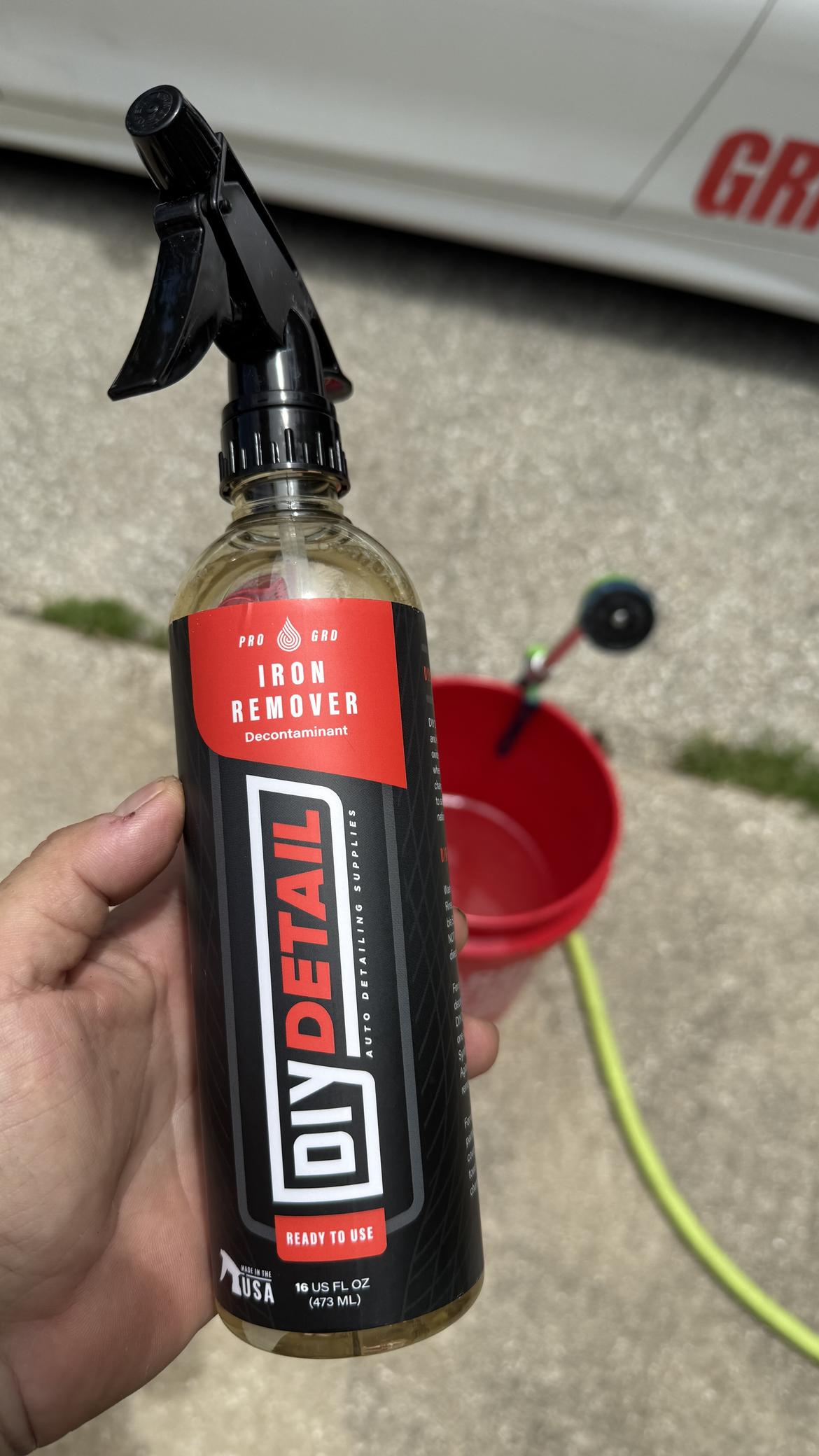 I did hose on another layer of Rinseless suds, though, to act as a carrier for the next treatment, DIY Detail’s Iron Remover. One of my biggest challenges when washing cars at home is that my water is particularly iron-rich–my brown sidewalks can certainly attest to that–and that can be tough on car finishes. DIY’s Iron Remover promises to neutralize ferrous material in the finish and allow it to be rinsed away with minimal or even zero scrubbing or wiping.