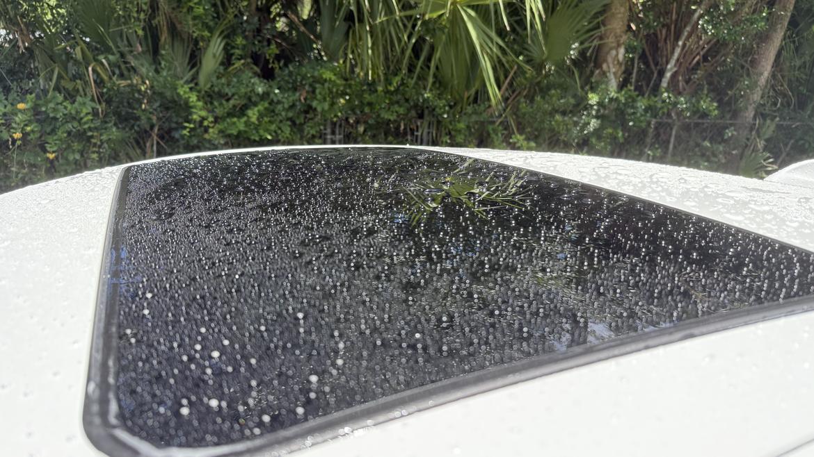 The finish has been exceptionally hydrophobic as well, which, in theory, will keep the car cleaner longer as dirt just kinda slides off. On the glass, the ceramic coating left some excellent rain-repellant qualities as well.