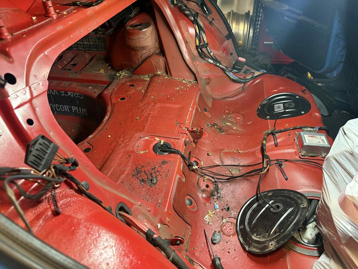 While waiting for the correct filter to arrive, I stripped out the interior. I knew this would have two benefits for us: reducing weight and uncovering the rust that we would need to repair. Removing the carpet revealed that the floors definitely needed a good bit of repair, but that is on the back burner while we work to get the car running.