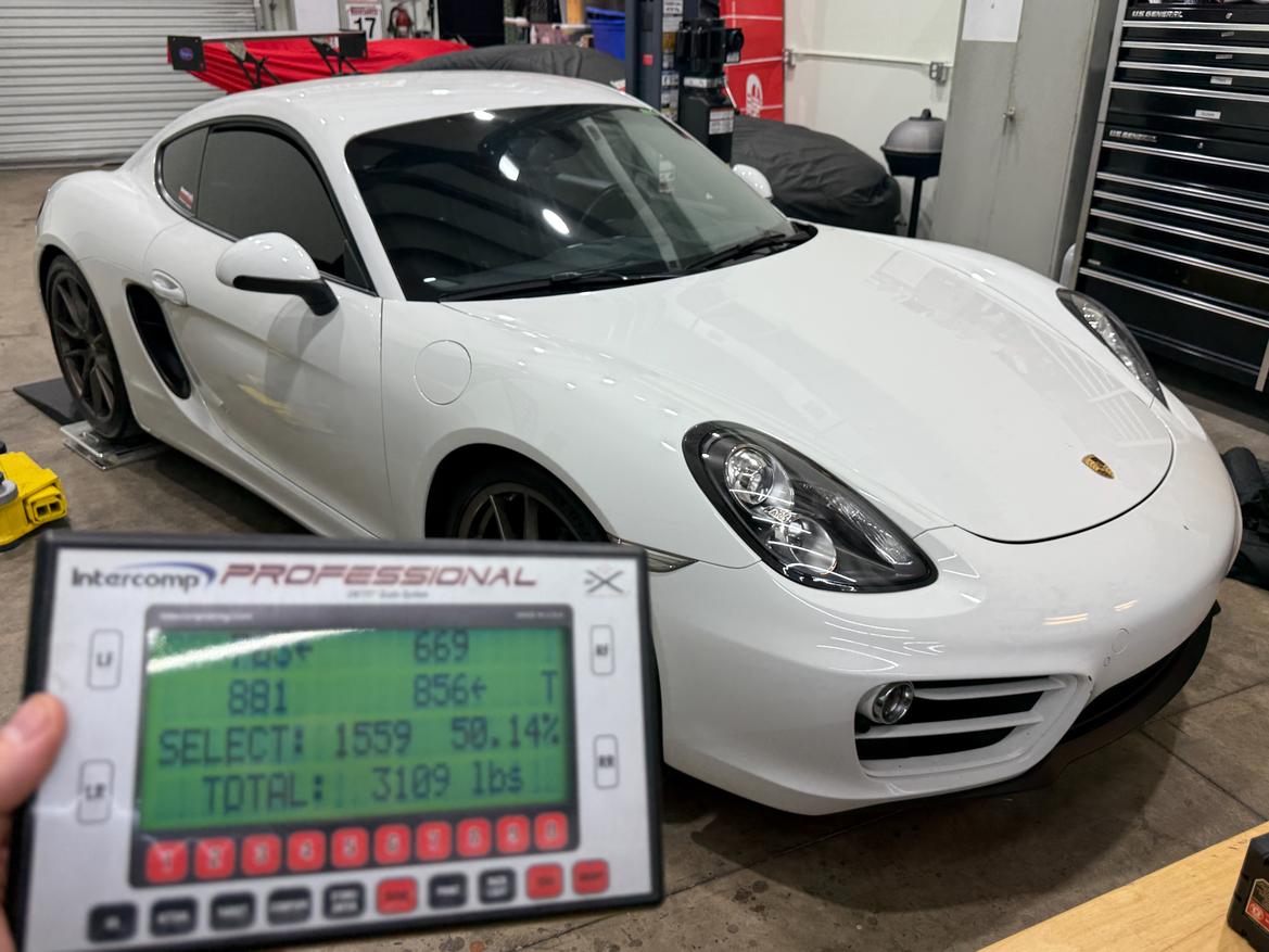 Is this the “right” alignment for our Cayman? Almost certainly not: As we’ve said in the past, the right way to determine your alignment settings is to test, and we found recommendations for this chassis all over the map online. We’ll call this a solid baseline, then test and iterate from here as we continue developing the car. Oh, and huge shoutout to Öhlins for putting the damping adjusters on the bottom of each shock, where they’re easy to get to without disassembling the interior every time we want to make a change.