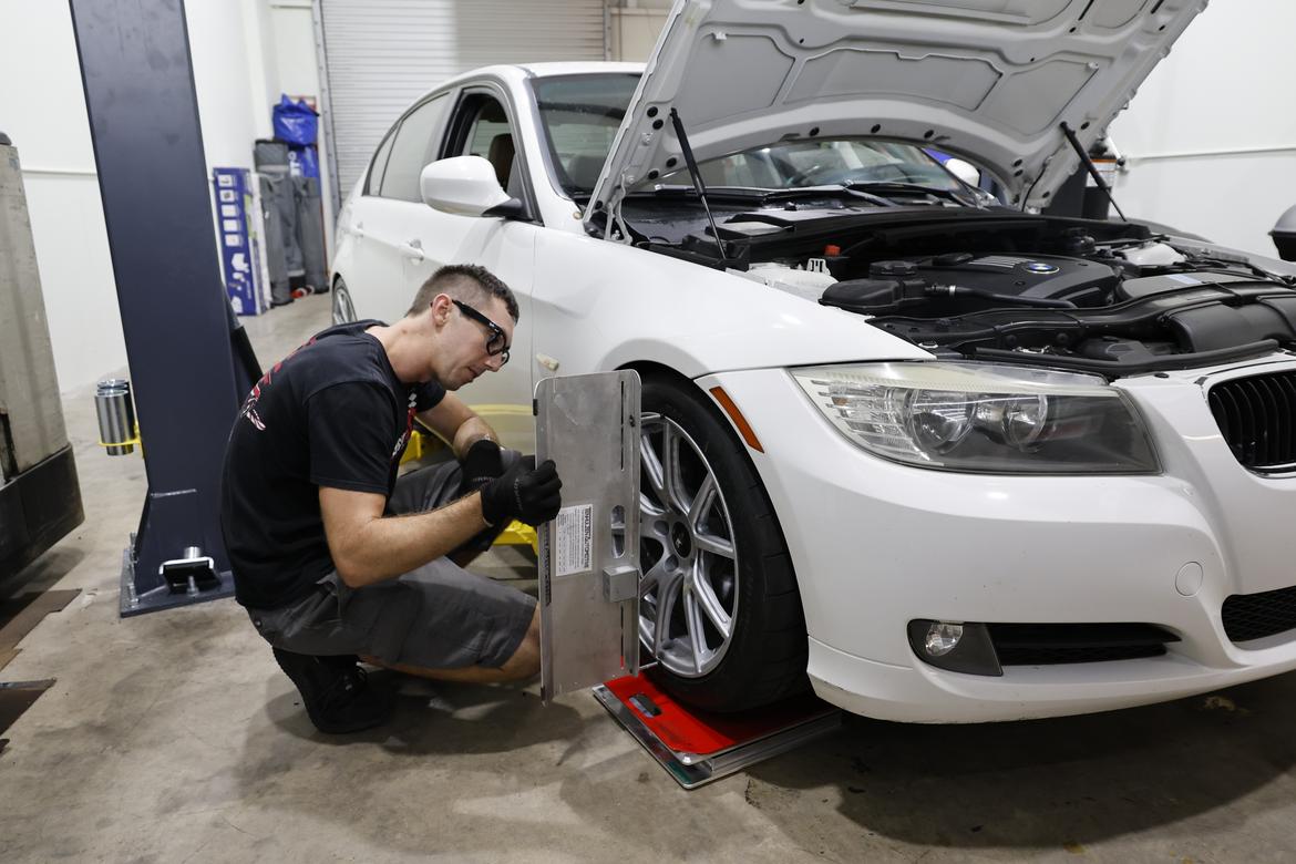 A peek underneath our BMW 328i confirmed the situation: The dampers looked to be original, meaning they were nearly 15 years old and had 125,000 miles of service. While the car rode well and still handled decently, we were looking for a bit more of a premium experience.