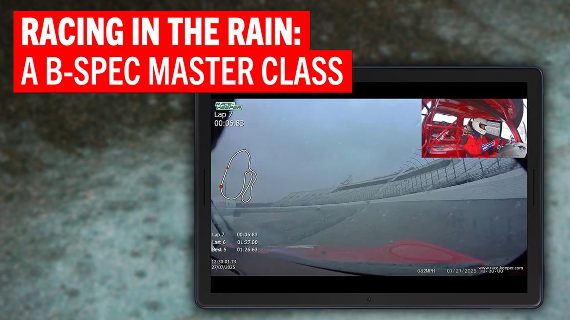 B-Spec employs a spec Goodyear Eagle RS-R, and their rain tire is a similar Goodyear with grooves cut for water shedding. B-Spec drivers have spoken highly of these R-comp Goodyears, with racers getting four or more competitive weekends out of a set while the rains are said to be grippy and drivable.