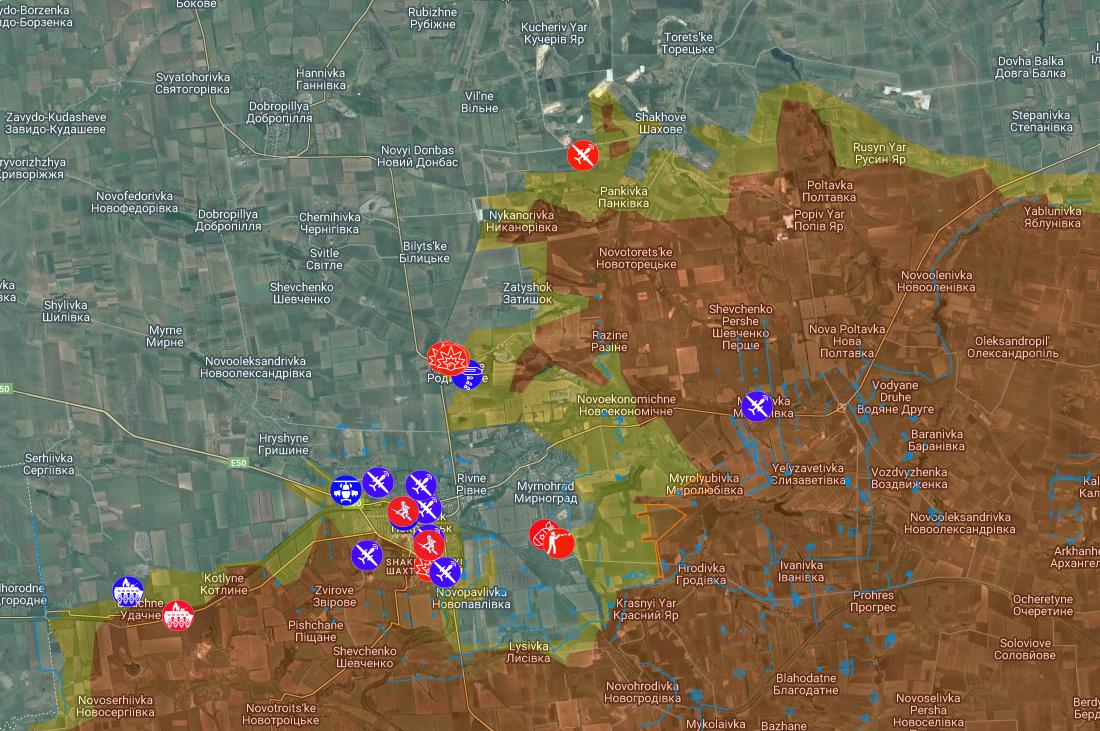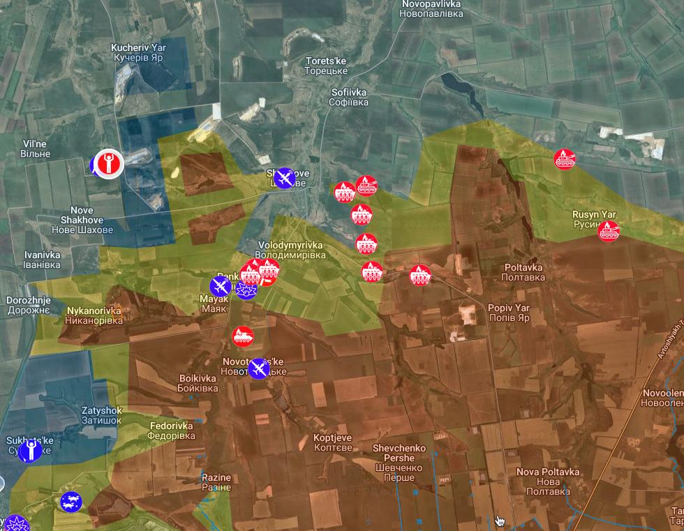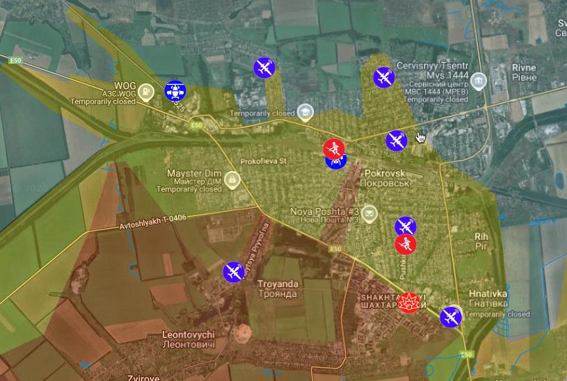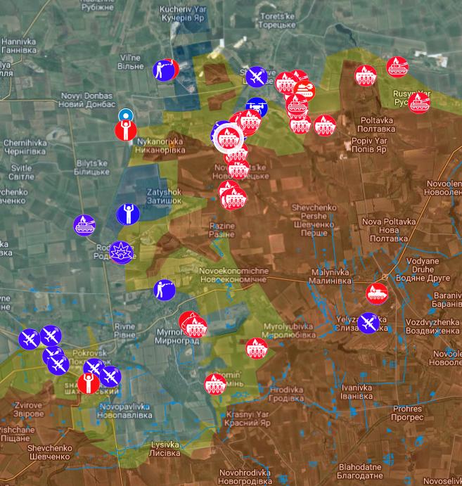 Some of these I think are the same as the previous map, but you can see a number of new ones. The Russians have made a push towards Pokrovsk and Myrnograd (lower left,which have been in a bit of a sticky situation for quite a while now). They are claiming they are surrounded, but that seems unlikely from this map.