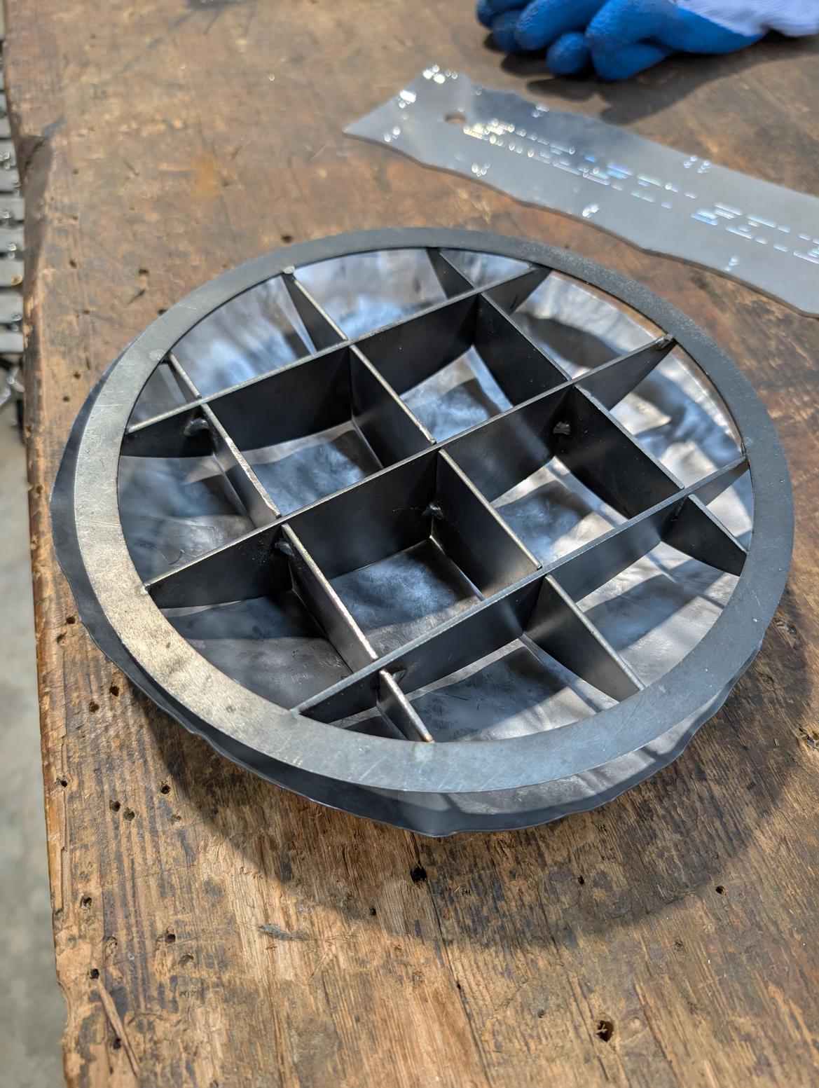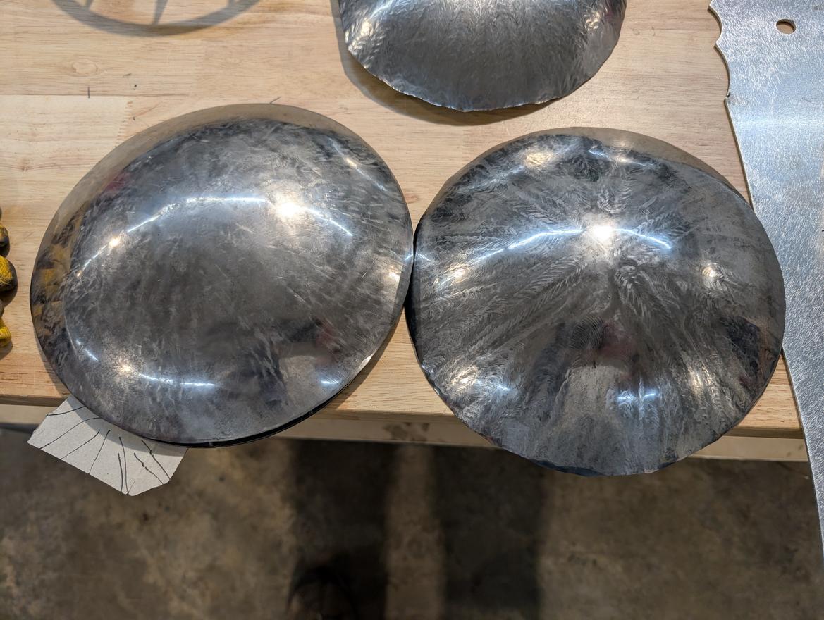 The bowl on the left was my hand formed one; it actually came out better than the raggedy one on the right where I used the power hammer.