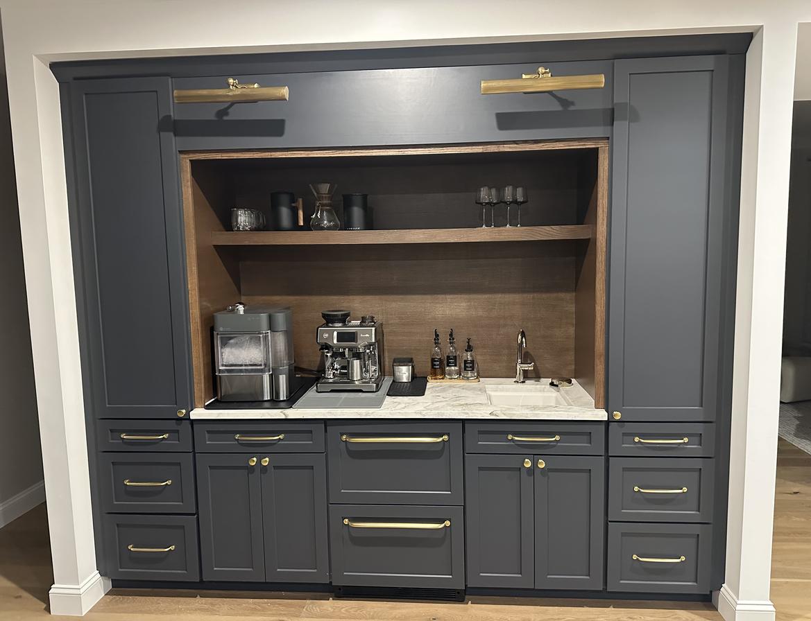 I do think it needs a brass faucet and glass rinse vs the current one, but then I think the faucet does match the coffee machine, so leave it alone.