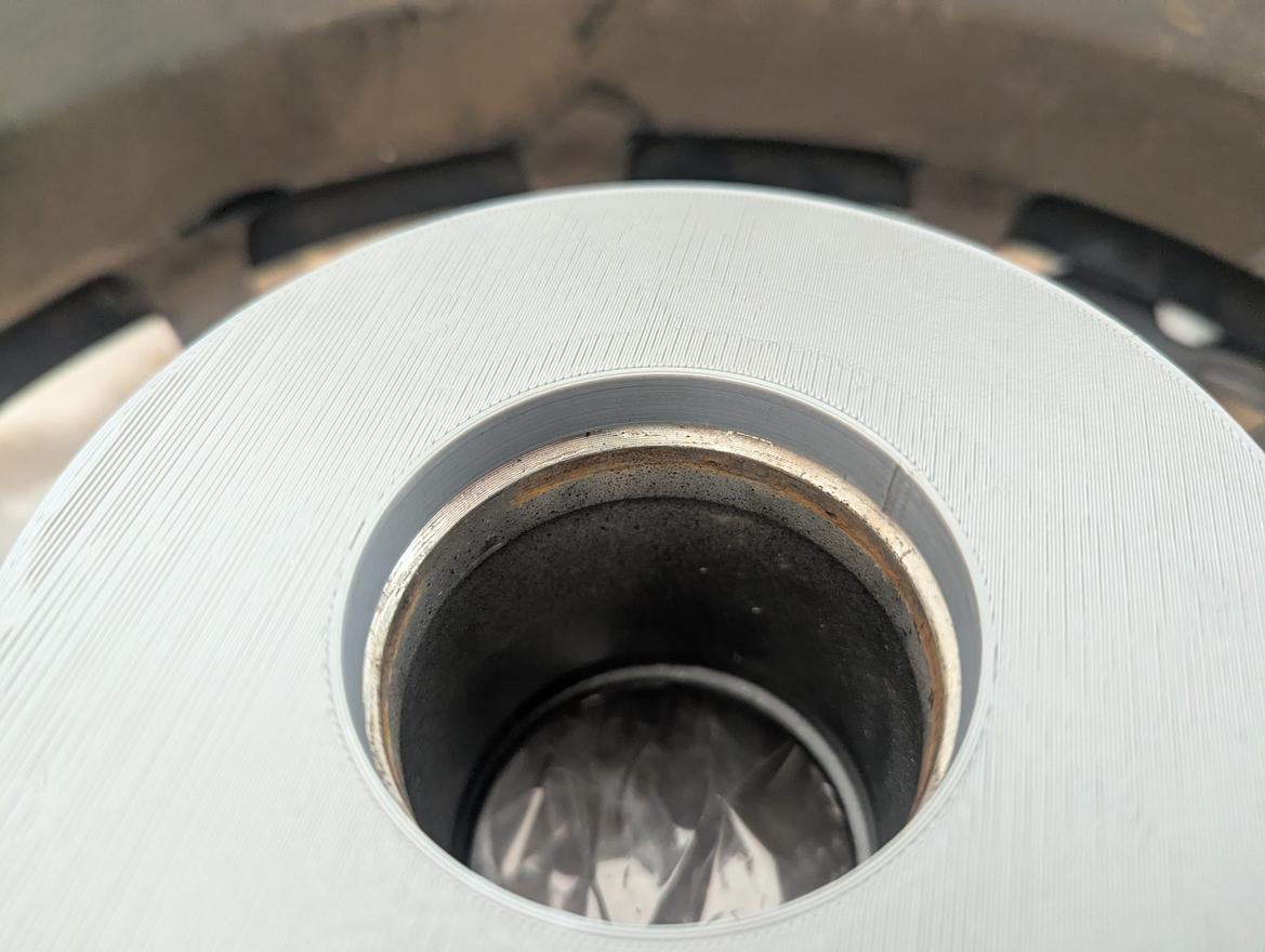 Well, I bought some wheels really cheap, and like most cheap things they're not really suited for my car. The center bore is 56.1, the Jetta I want to put them on is a 57.1 - so like, what to do? I guess 3d print a guide to precisely open it up without any specialized tools! Or that's what I'm hoping I'll be doing.