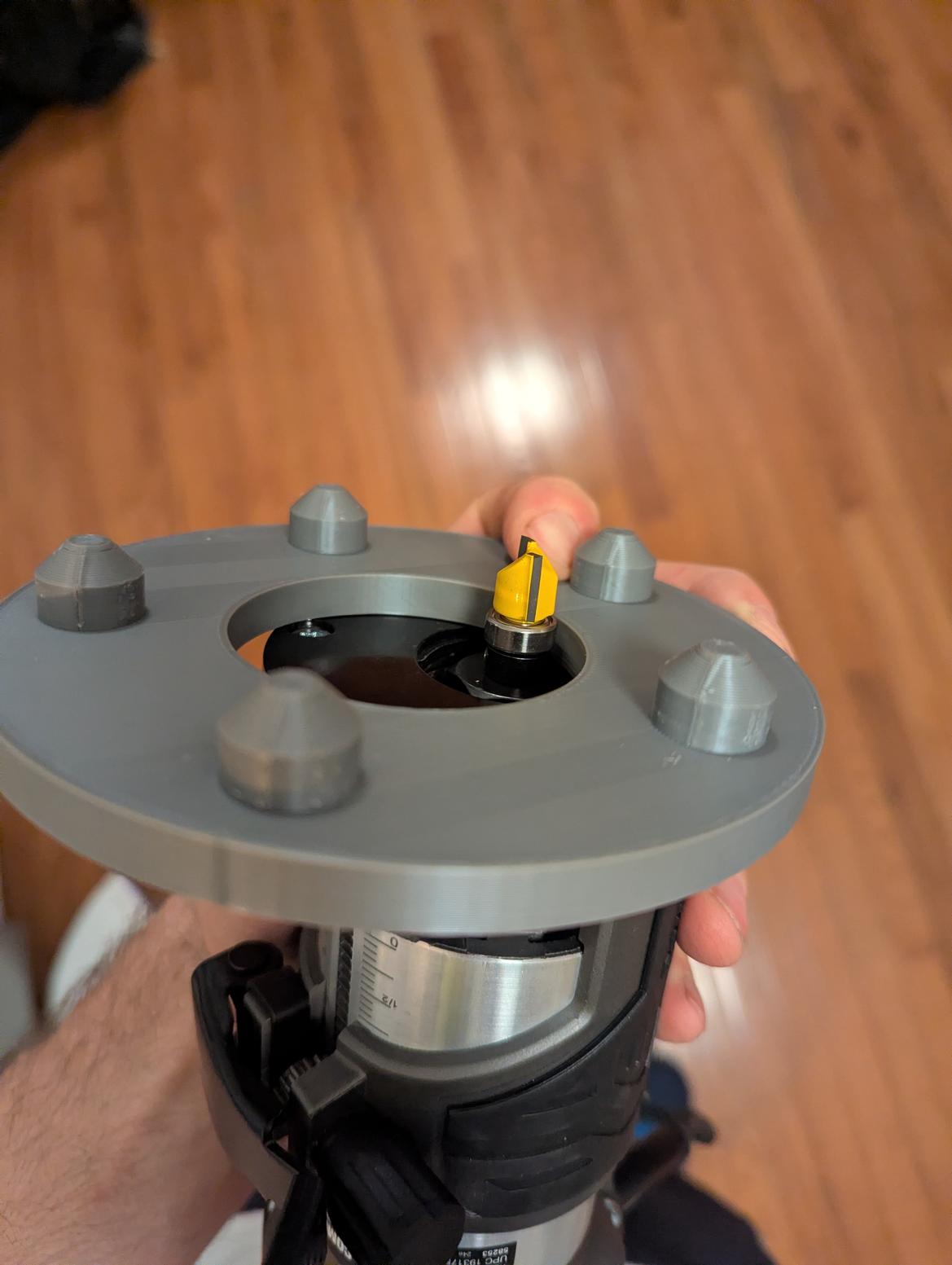 Maybe print a couple in successively larger diameters? That router bit isn't going to like taking that much off in aluminum at one go...