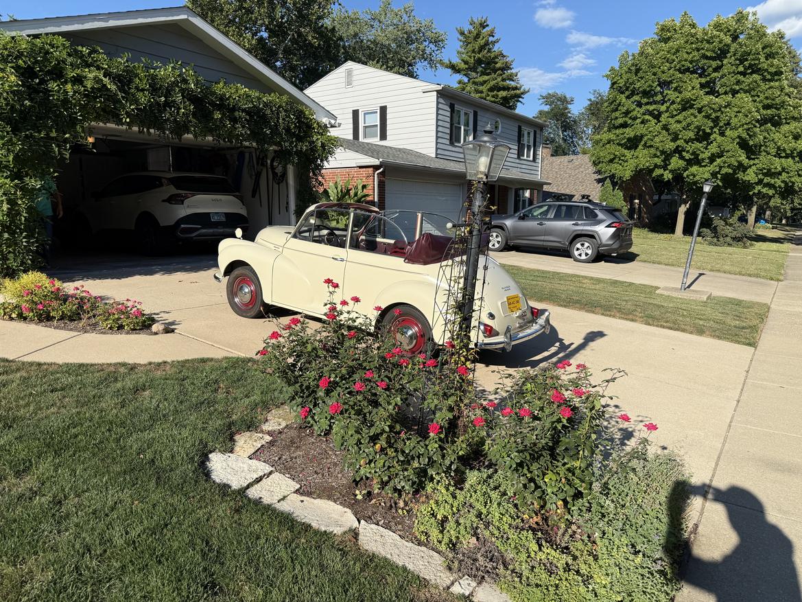 That's not a Mini. It is a Morris Minor 1000. They never bothered to make a "Minor" logo for them and often after the engine upgrade to 1000cc the Minor name was allowed to fade away long before production ended.